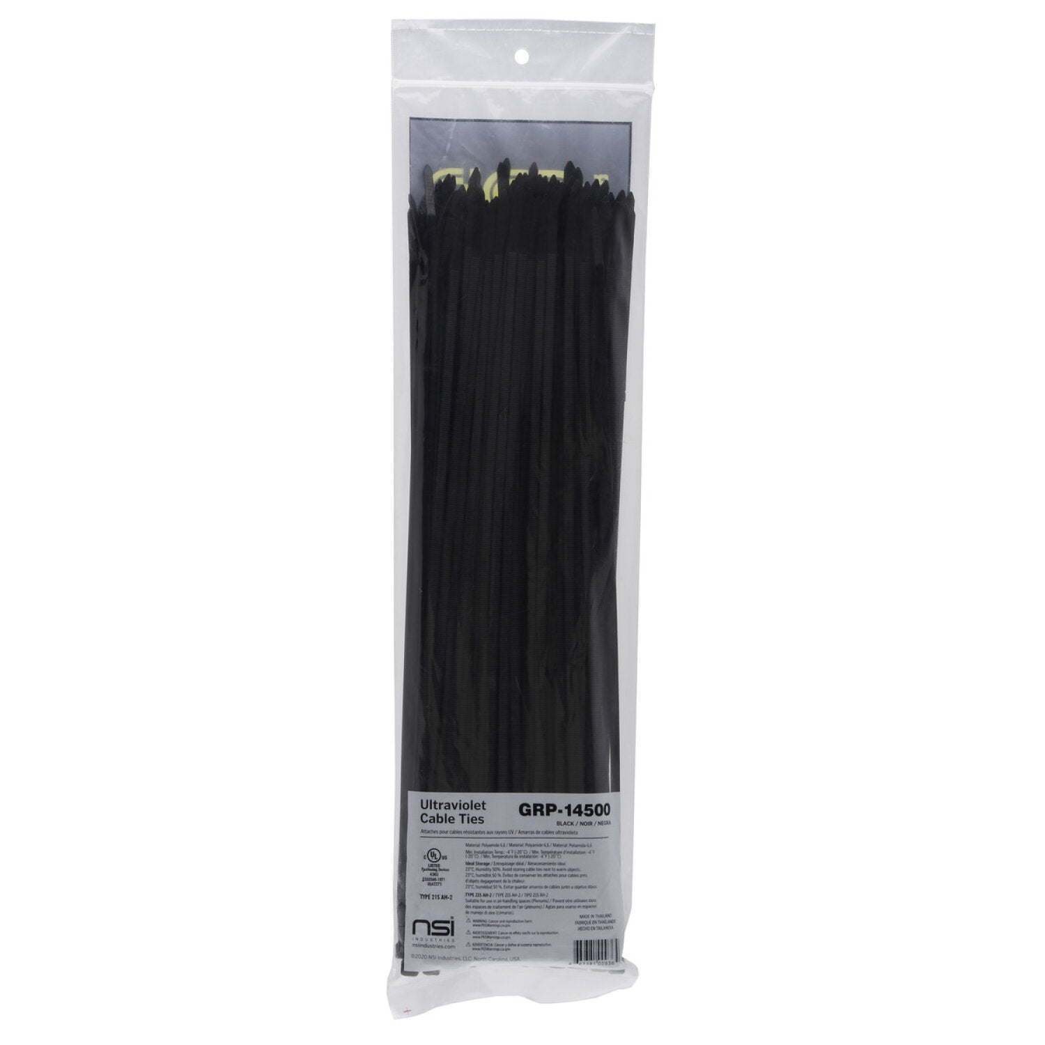 NSI GRP-14500 14”, Black General Purpose 50lb Cable Ties, 100 Pack