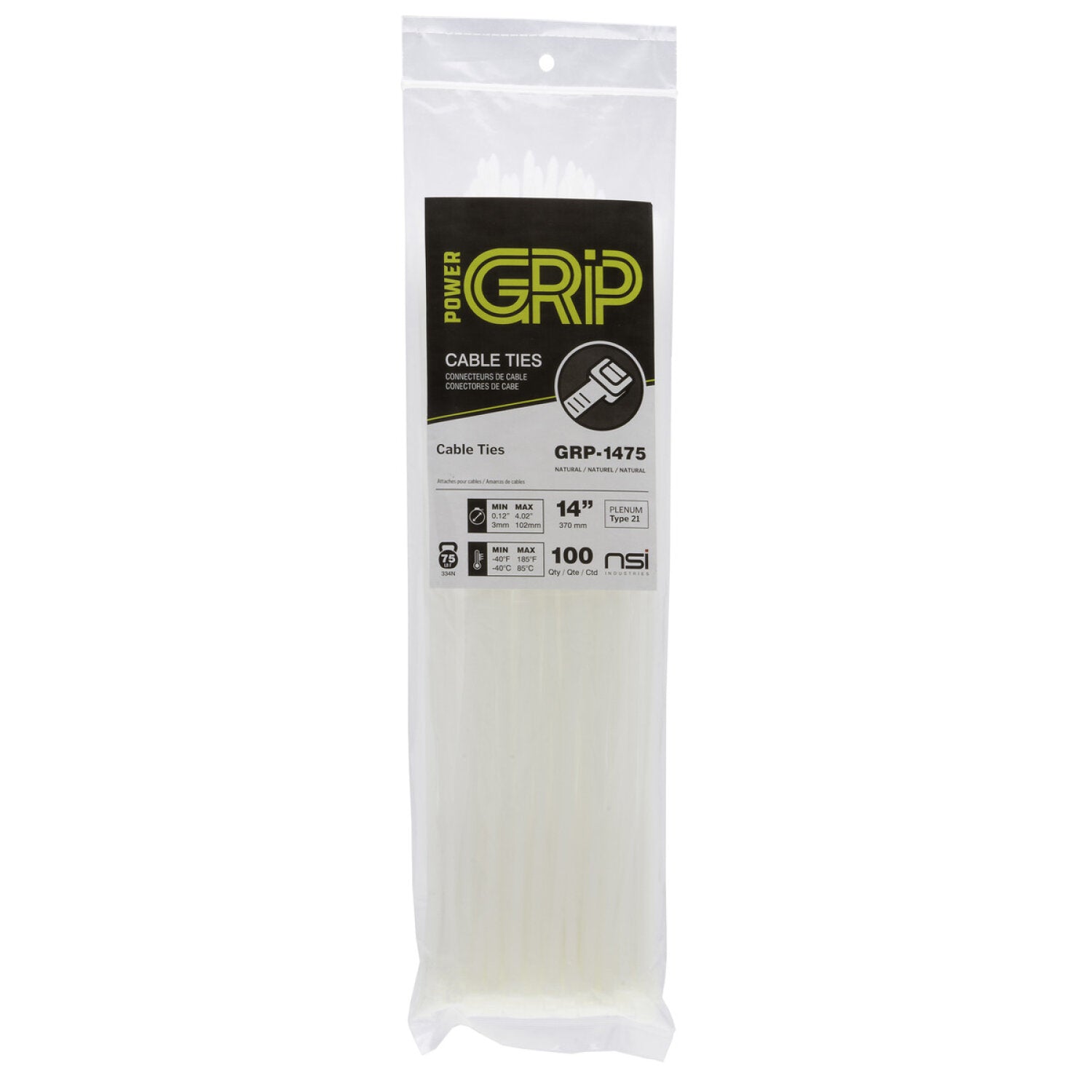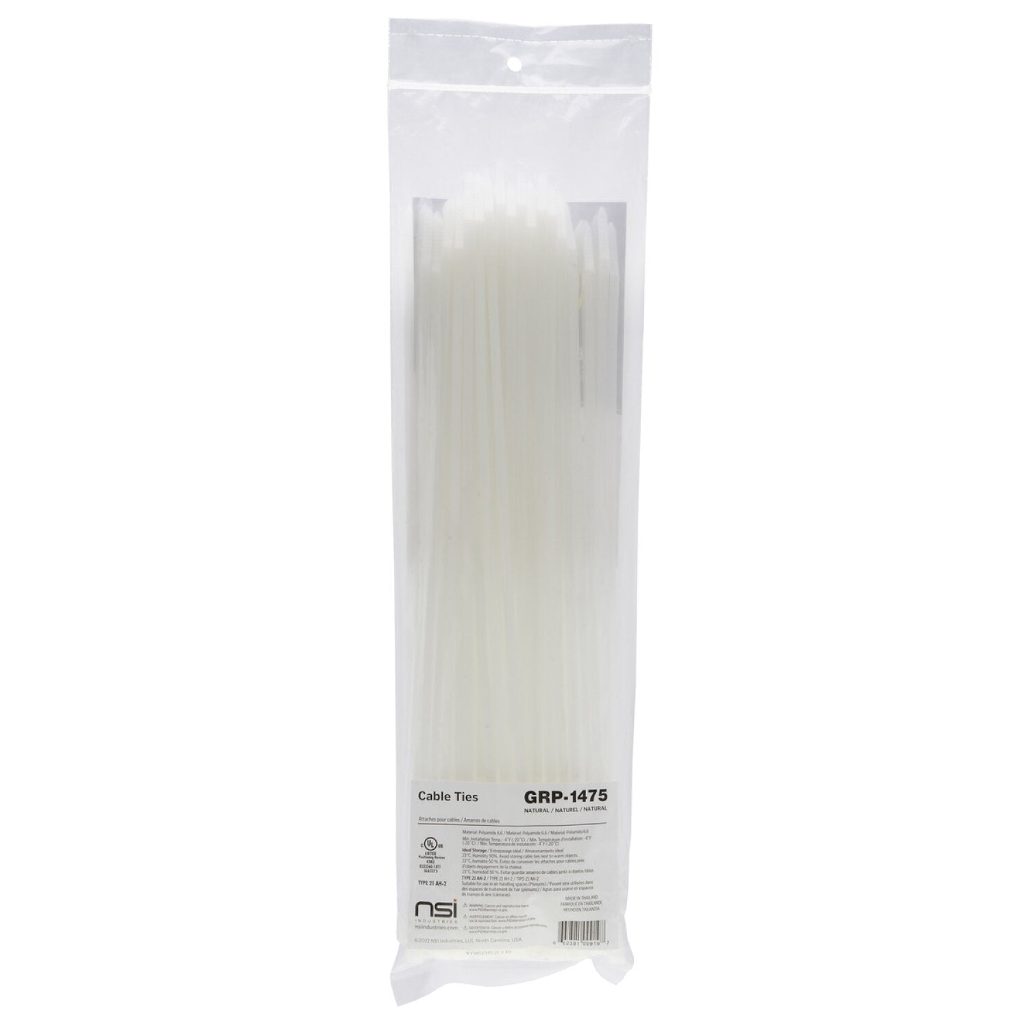 NSI GRP-1475 14”, Natural General Purpose 75lb Cable Ties, 100 Pack