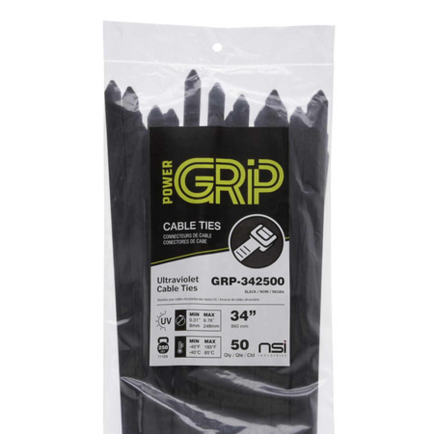NSI GRP-342500 34”, Black Super Heavy-Duty 250lb Cable Ties, 50 Pack