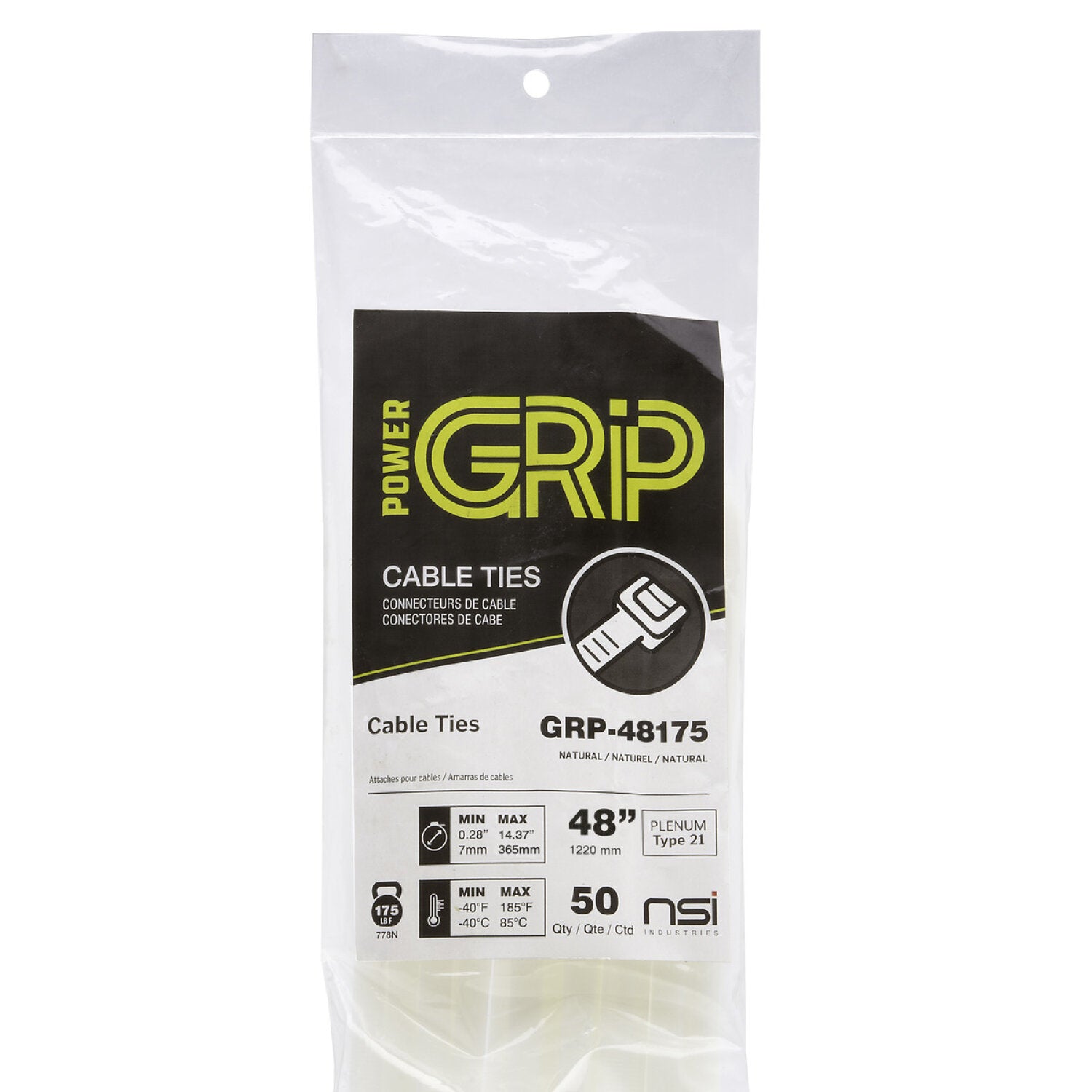 NSi GRP-48175 48”, Natural Extra Long Heavy-Duty 175lb Cable Ties, 50 Pack