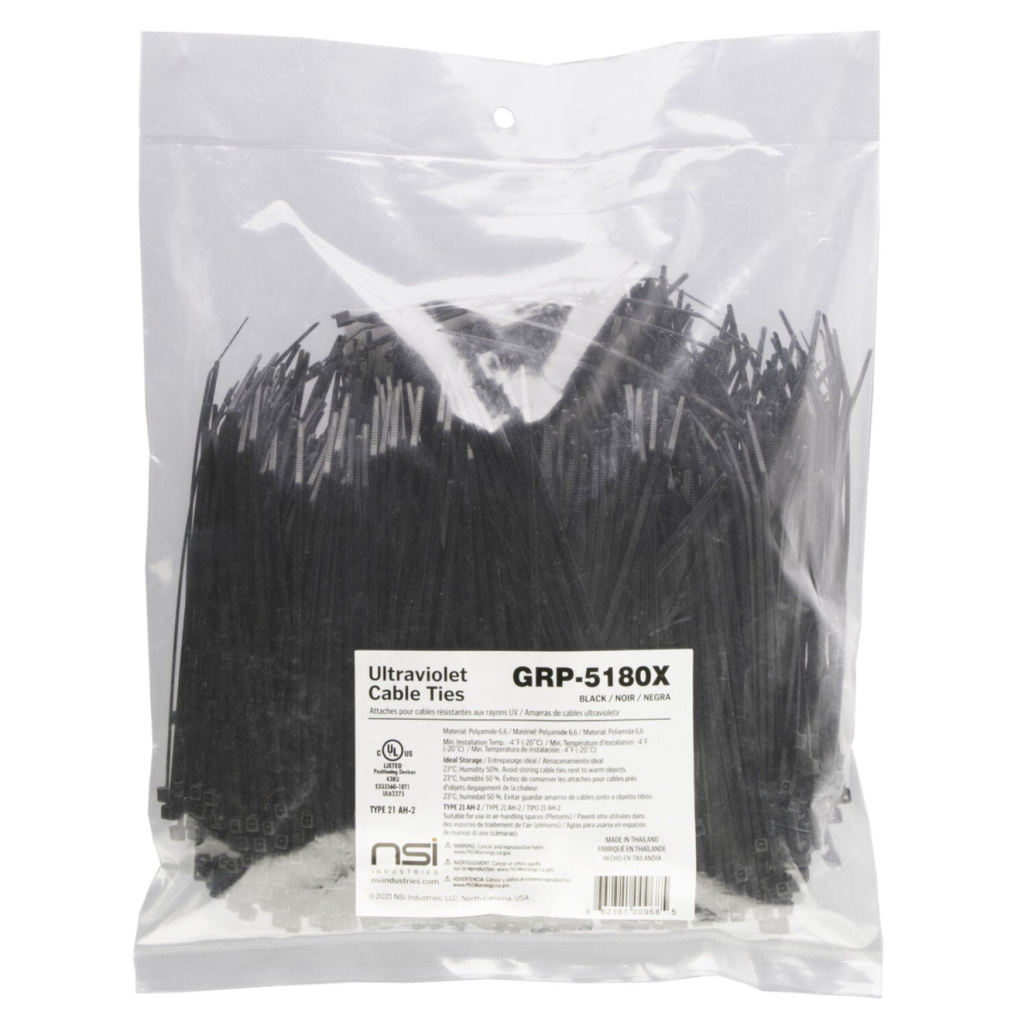 NSI GRP-5180X 5”, Black General Purpose 18lb Cable Ties, 1000 Bulk Pack