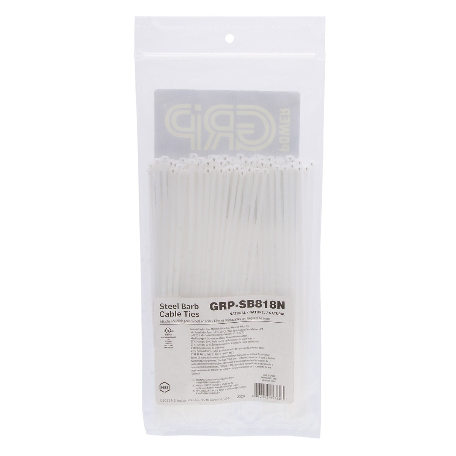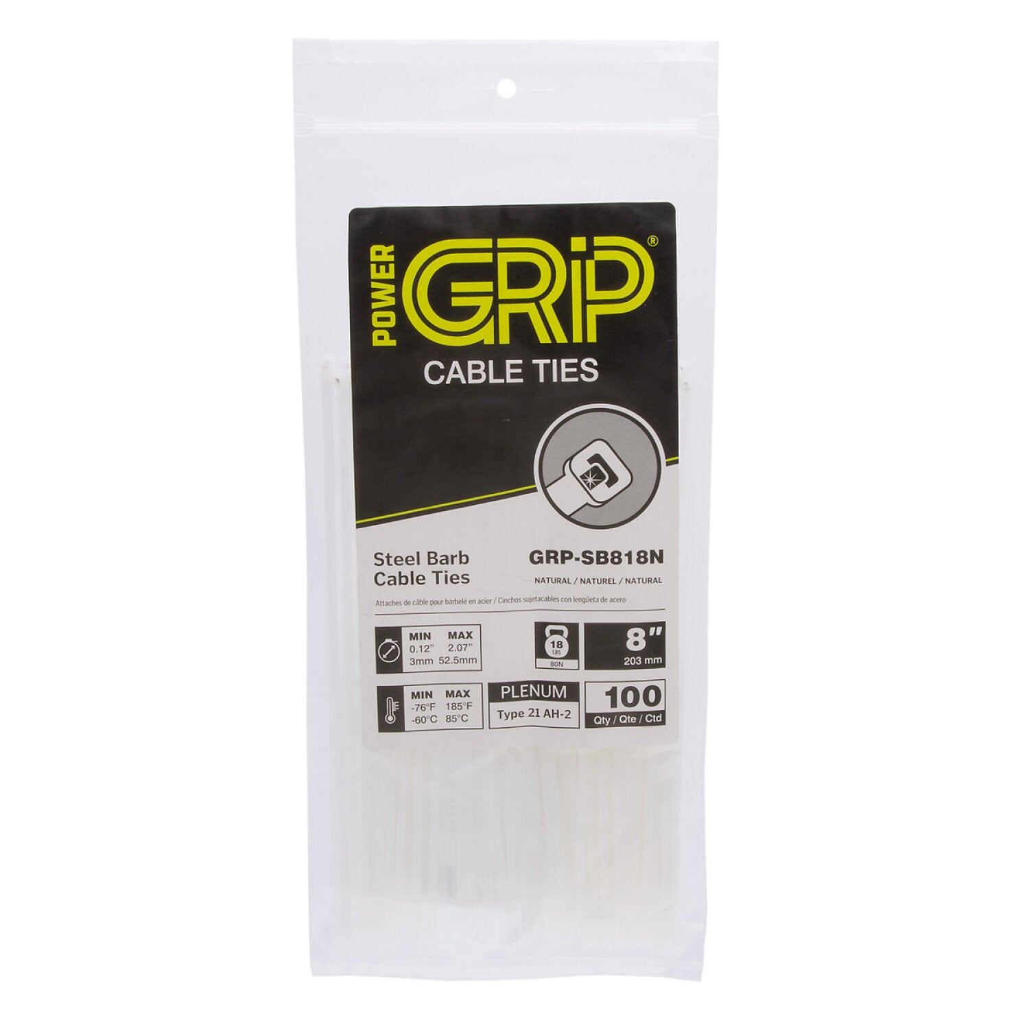 NSI GRP-SB818N 8”, Natural Steel Barb 18lb Cable Tie, 100 Pack