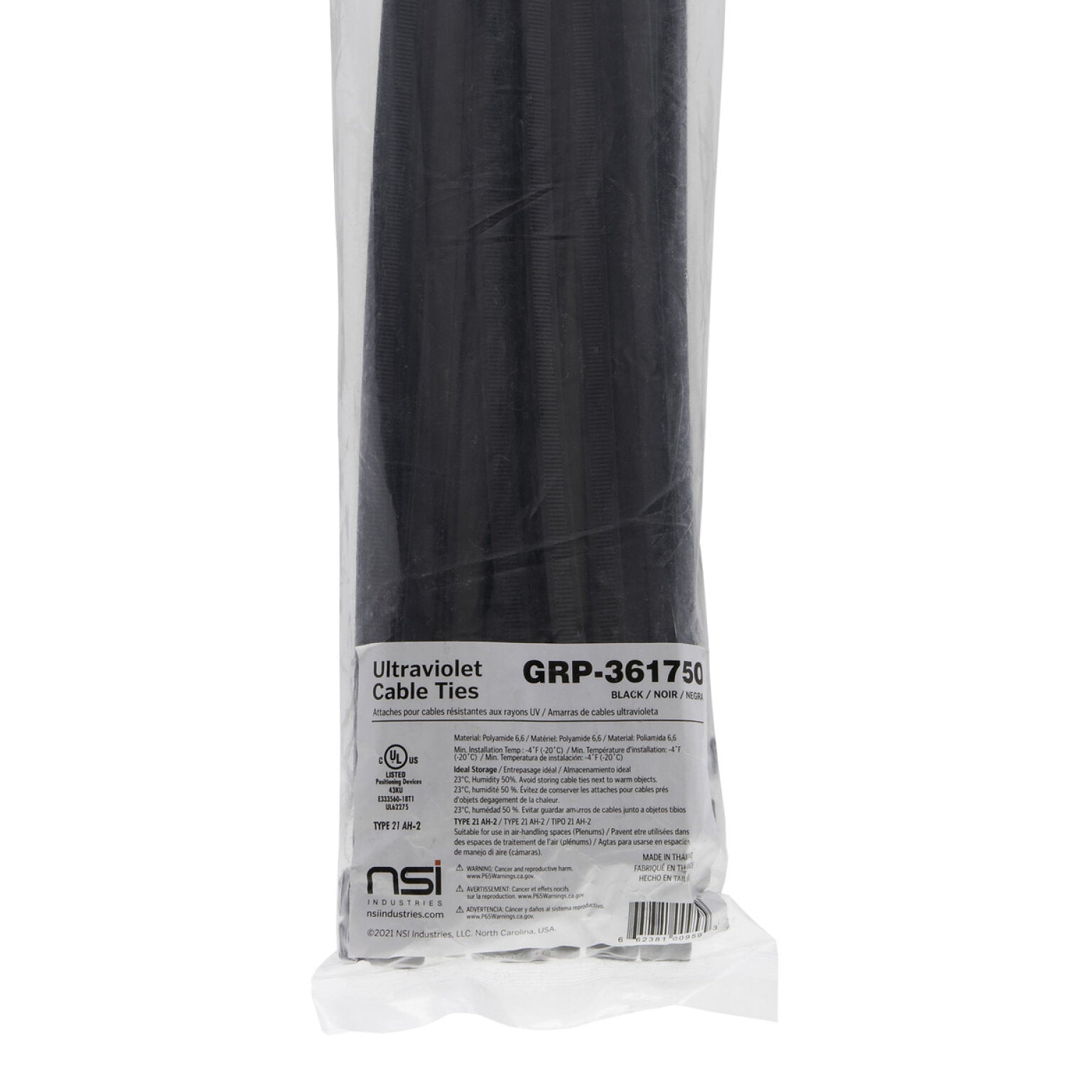 NSI GRP-361750 36”, Black Super Heavy-Duty 175lb Cable Ties, 50 Pack