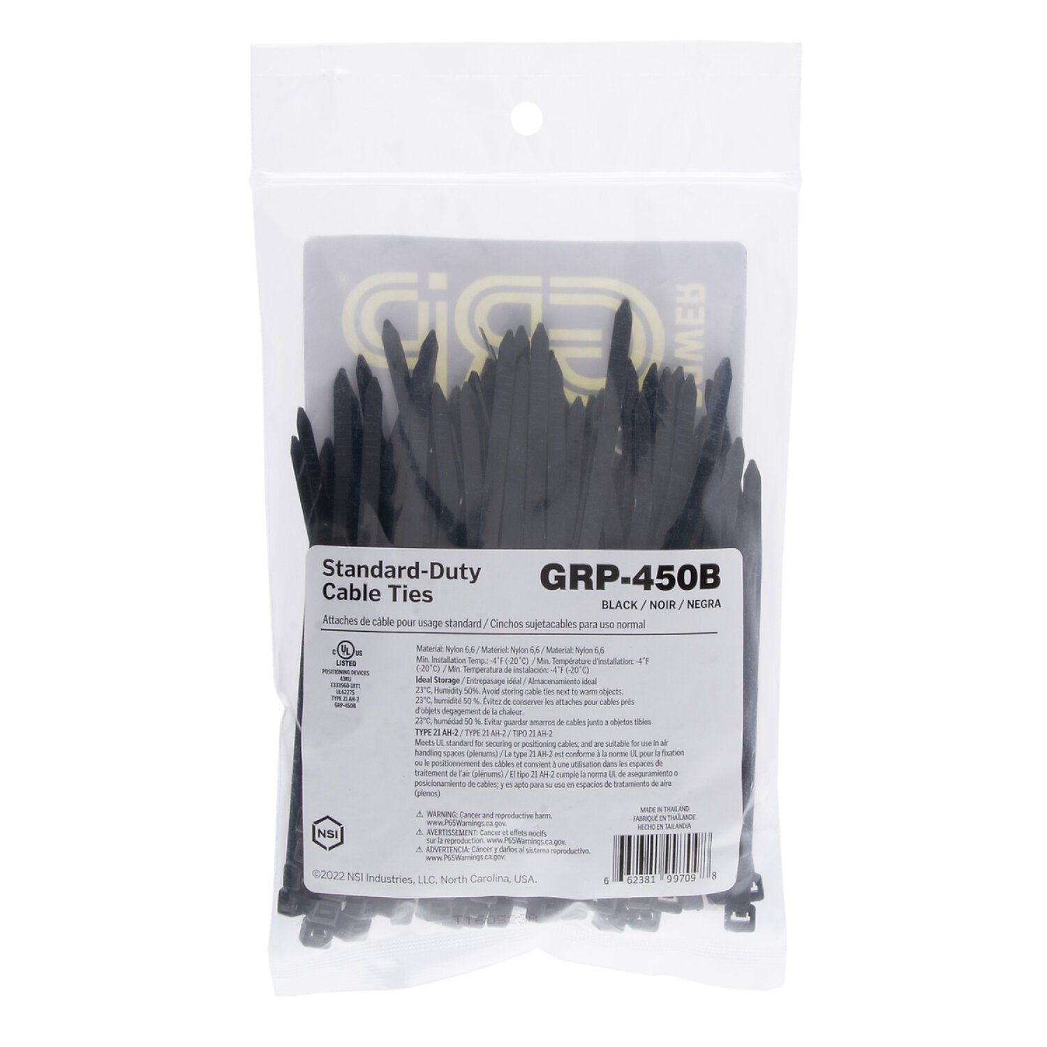 NSI GRP-450B 4”, Black General Purpose 50lb Cable Ties, 100 Pack