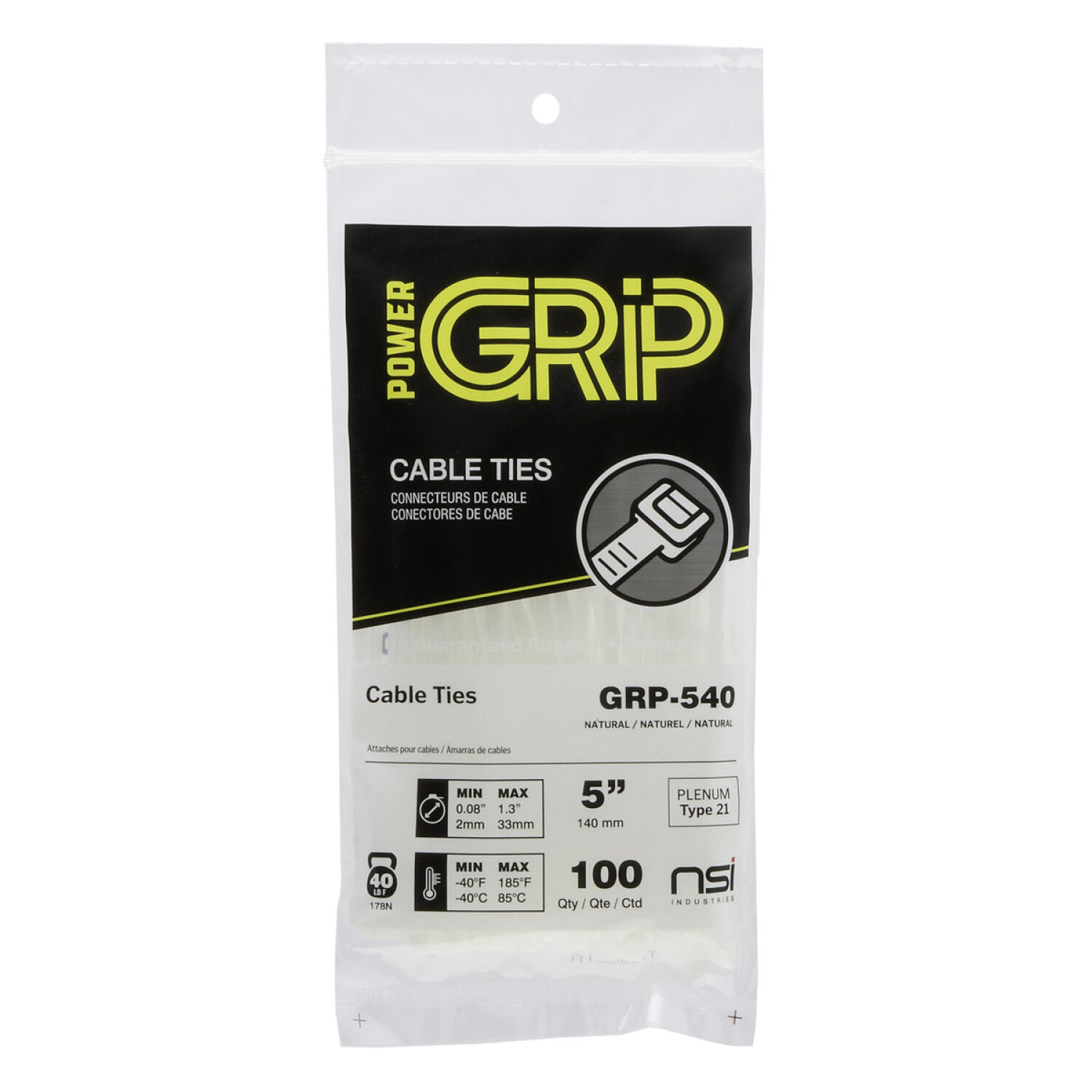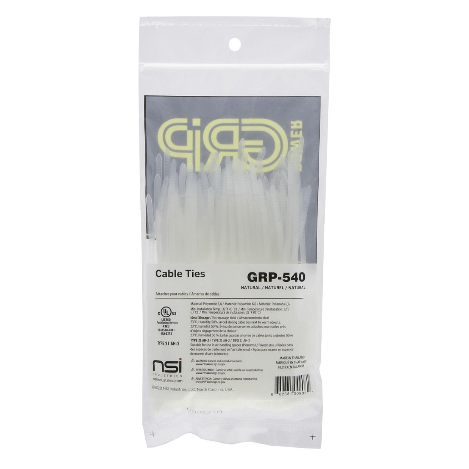 NSI GRP-540 5”, Natural General Purpose 40lb Cable Ties, 100 Pack