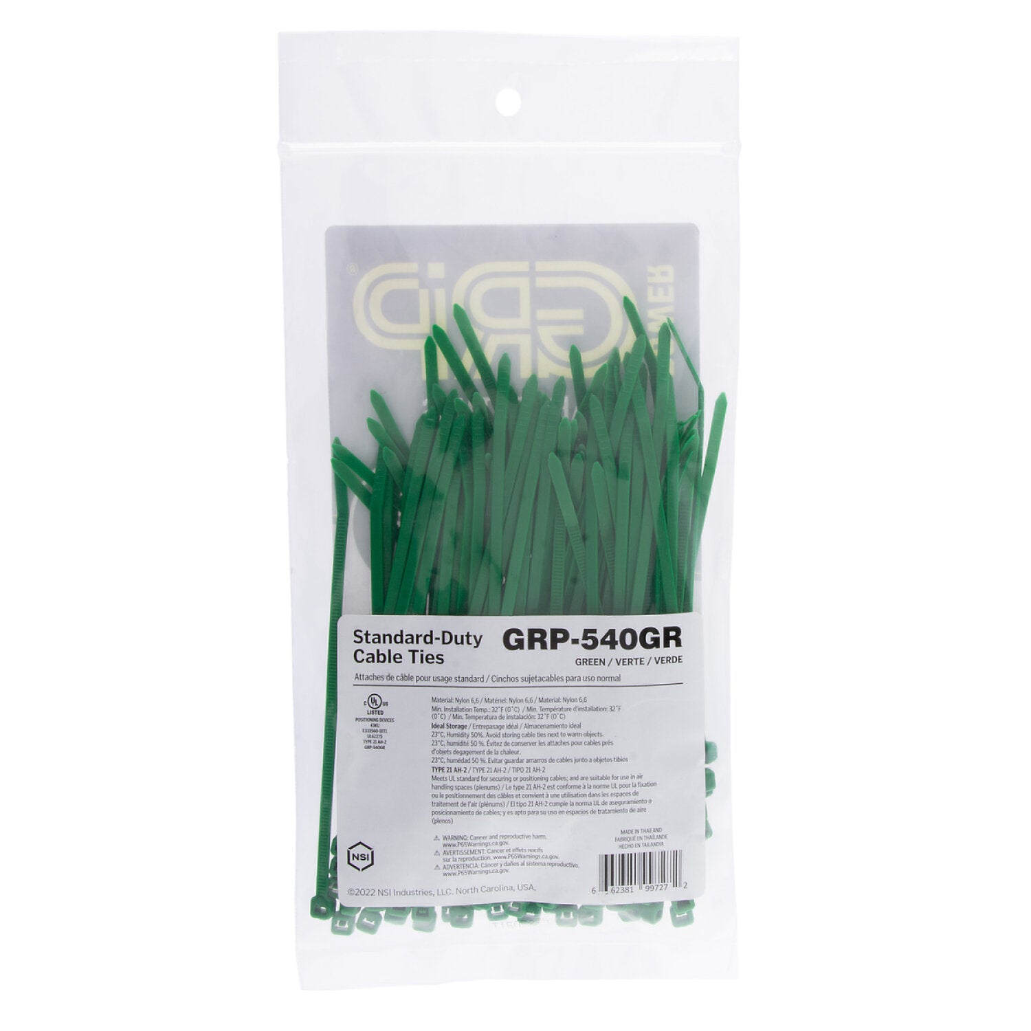 NSI GRP-540GR 5” Green General Purpose 40lb Cable Ties, 100 Pack