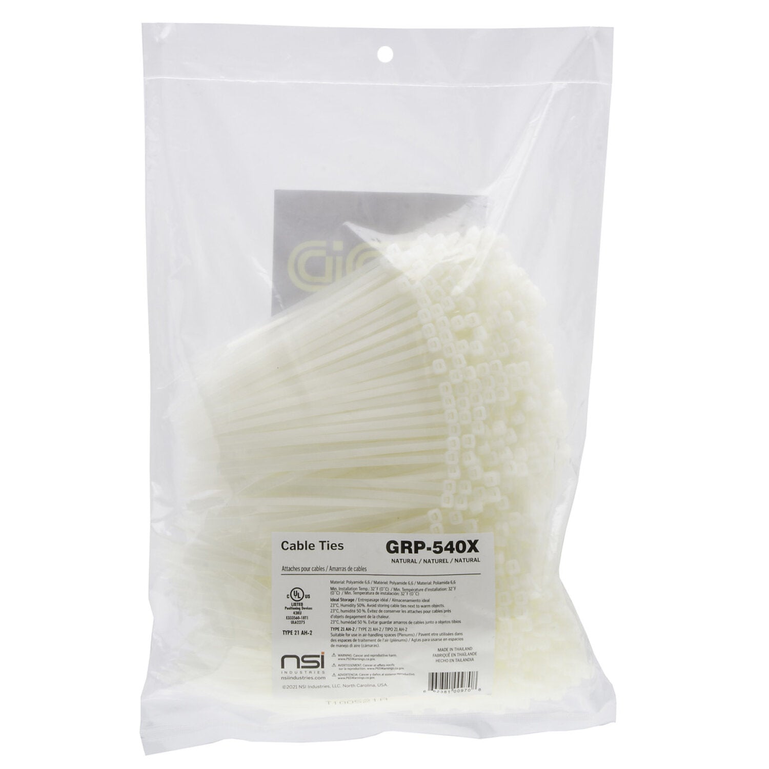 NSI GRP-540X 5”, Natural General Purpose 40lb Cable Ties, 1000 Bulk Pack