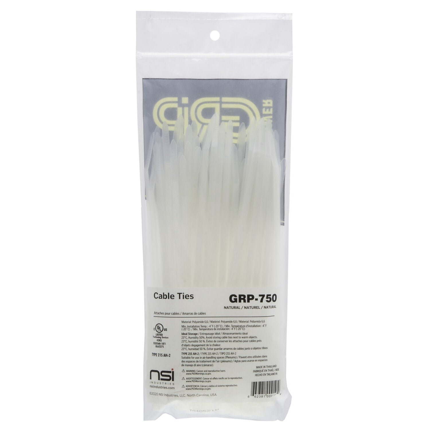 NSI GRP-750 7”, Natural General Purpose 50lb Cable Ties, 100 Pack