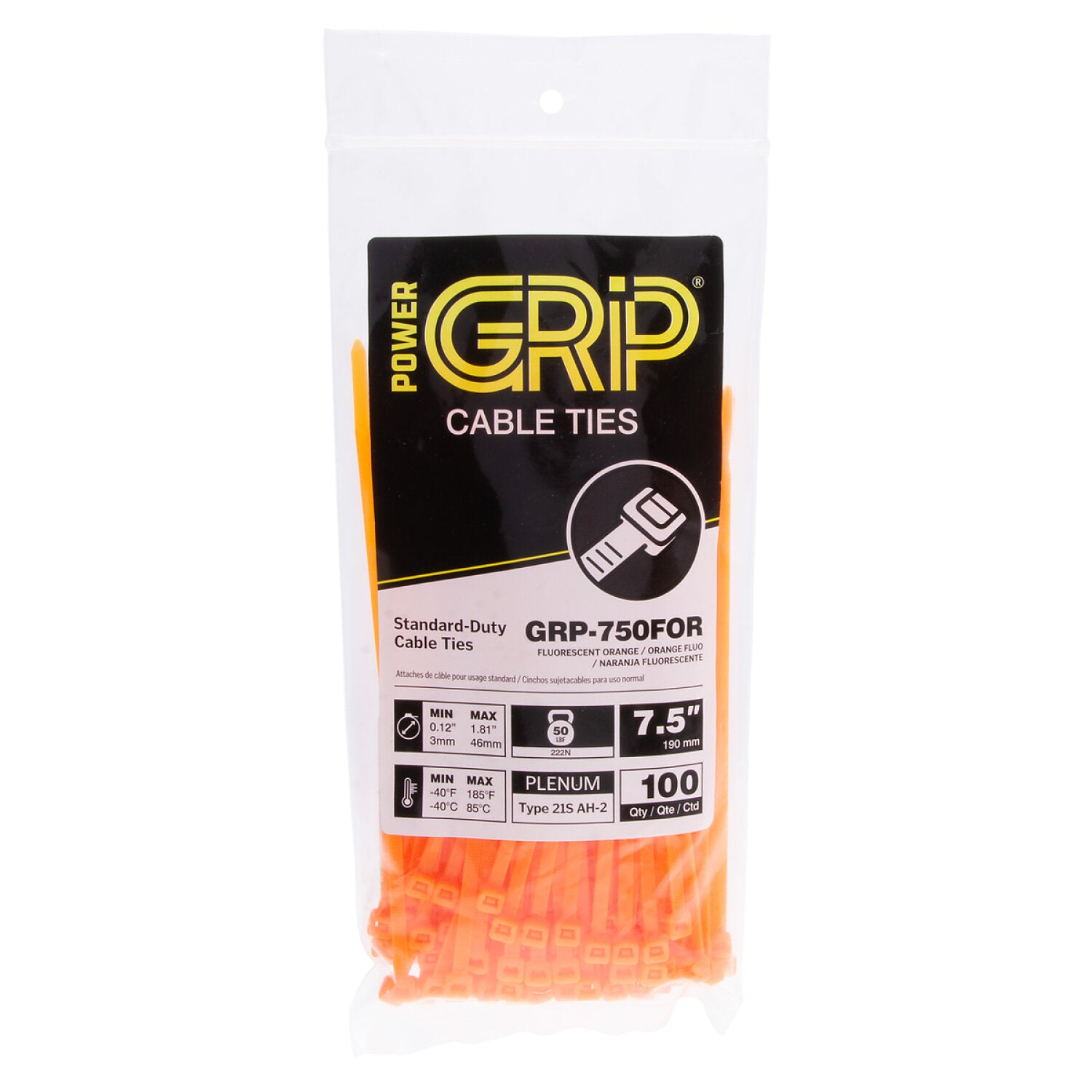 NSI GRP-750FOR 7.5” Fluorescent Orange General Purpose 50lb Cable Ties, 100 Pack