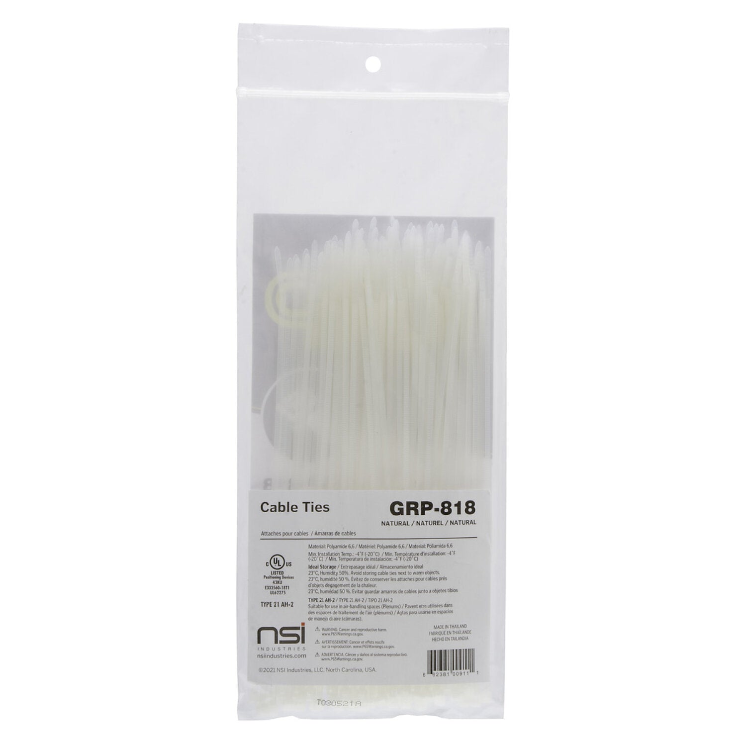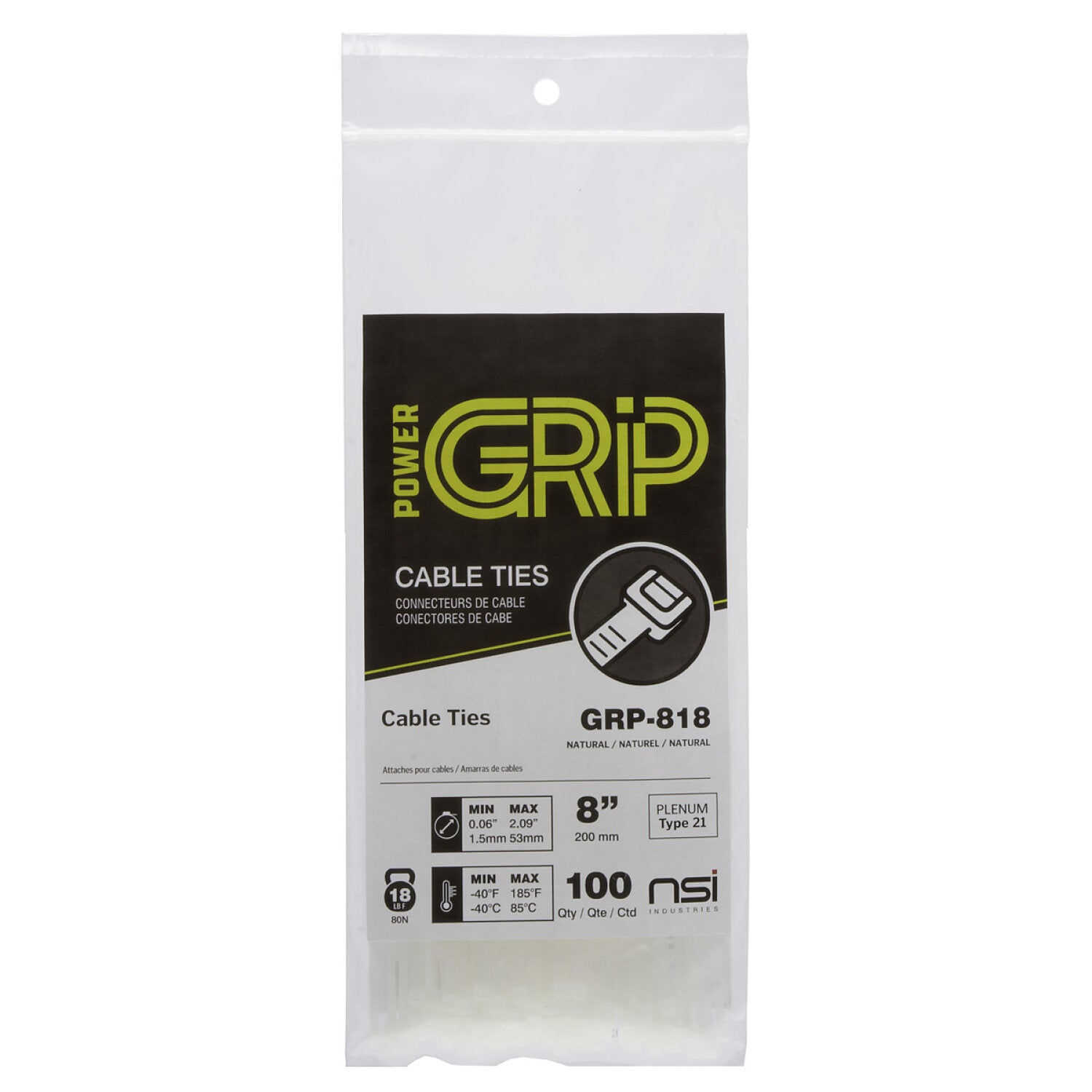 NSI GRP-818 8”, Natural General Purpose 18lb Cable Ties, 100 Pack