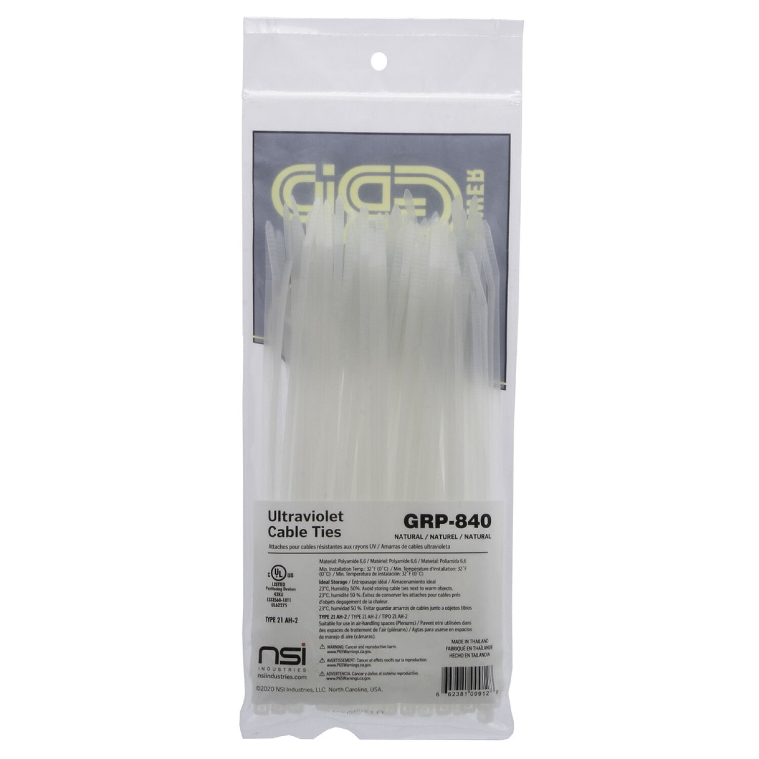 NSI GRP-840 8”, Natural General Purpose 40lb Cable Ties, 100 Pack
