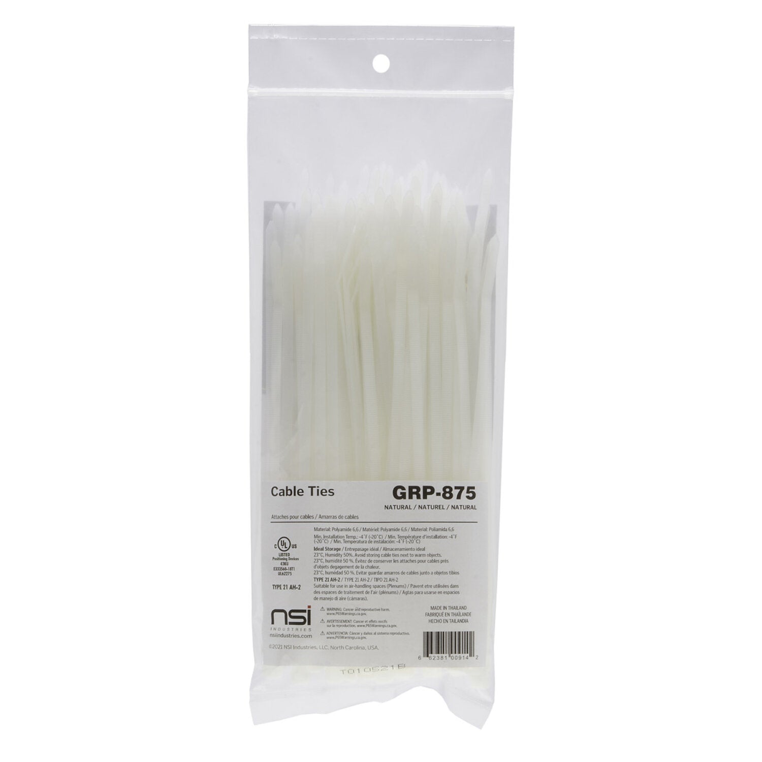 NSI GRP-875 8”, Natural General Purpose 75lb Cable Ties, 100 Pack