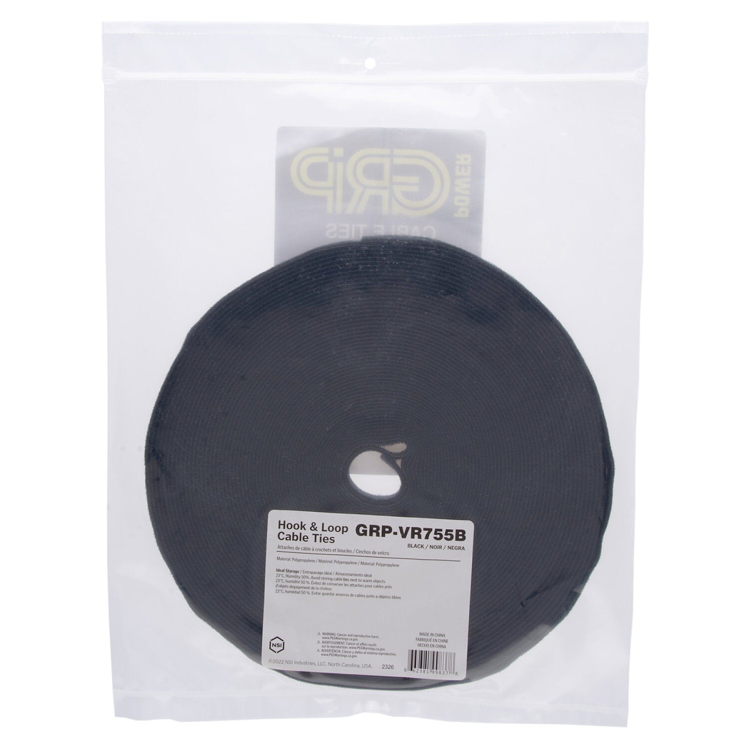 NSI GRP-VR755B 75 Foot by 0.5 Inch Black Roll of Hook-and-Loop Mounting