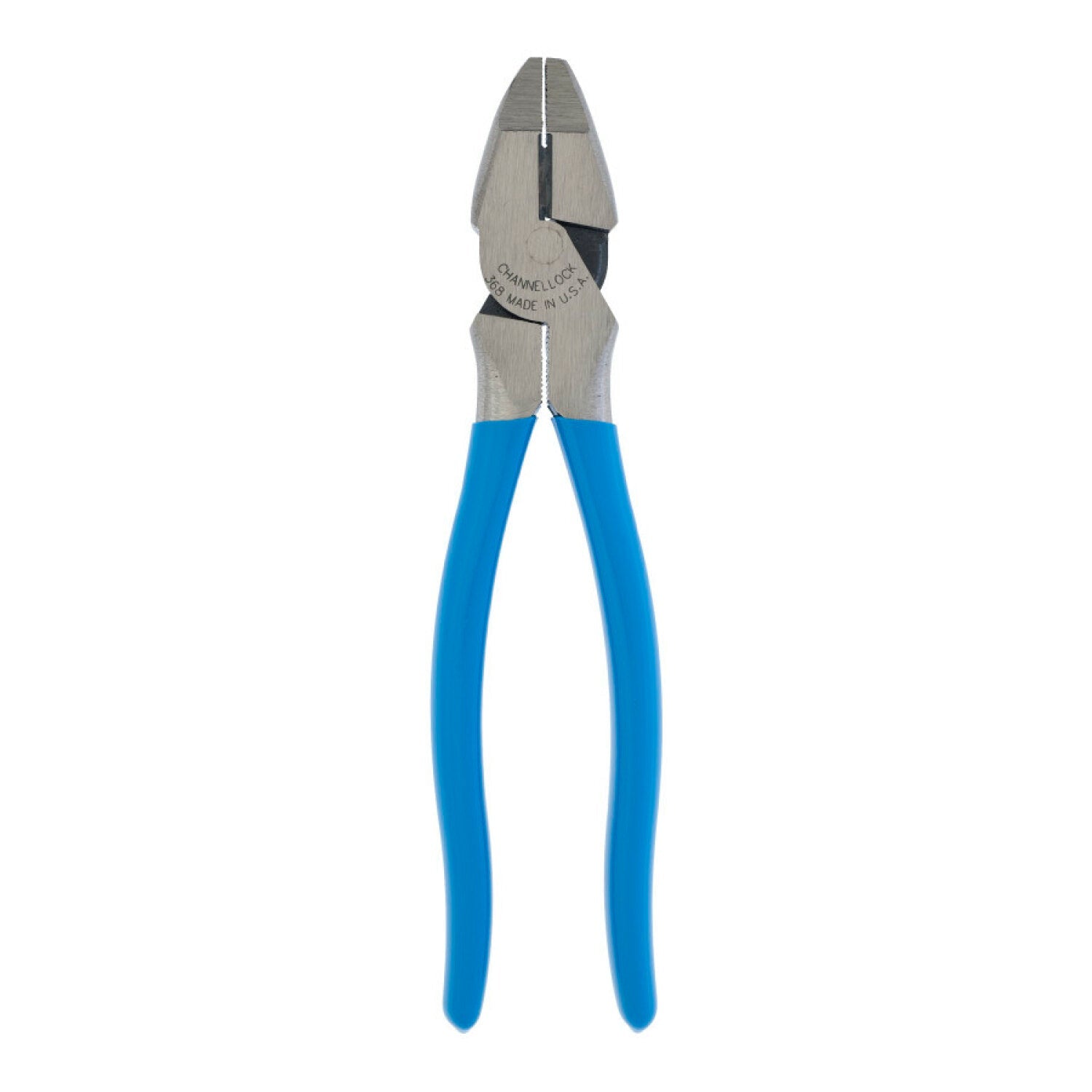 CHANNELLOCK® Round Nose Linemen's Pliers feature Xtreme Leverage Technology (XLT) which positions the rivet closer to the cutting edge to make cutting easier than ever. State-of-the-art laser heat-treating offers a strong and consistent pattern across the cutting edge, adding increased strength and longevity over traditional hardening practices. Crosshatch jaws are laser heat-treated to provide maximum grip and longevity. A precision-machined knife and anvil style cutting system ensures perfect mating. CHANNELLOCK® Linemen's Pliers are made in USA and forged from high carbon U.S. steel that is specially coated for ultimate rust prevention.