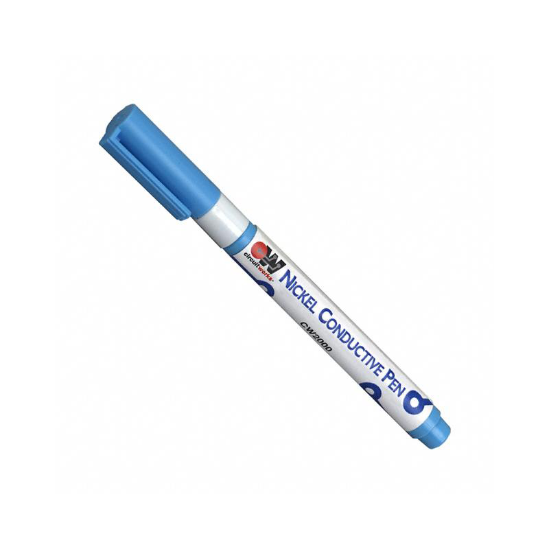 The Pen Dispenser for economically drawing conductive traces, jumpers and shielding. Quickly create conductive nickel traces, easy and economical to use. Valved pen tip provides for easy applications. Good electrical conductivity and dries in minutes at room temperature. Applications: Solderless linking of components, EMI Shielding and grounding, Quick Prototype Modification. CW2000 9 g (0.32 oz)Quickly creates conductive nickel traces - Easy and economical to use - Valve pen tip for easy applications - Good electrical conductivity - Dries in minutes at room temperature