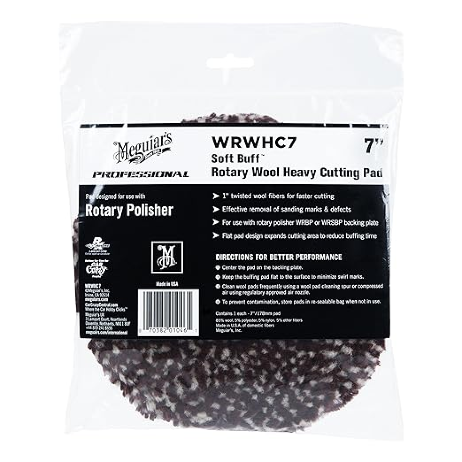 Meguiar's WRWHC7 Soft Buff Rotary Wool Heavy Cutting Pad, 7"