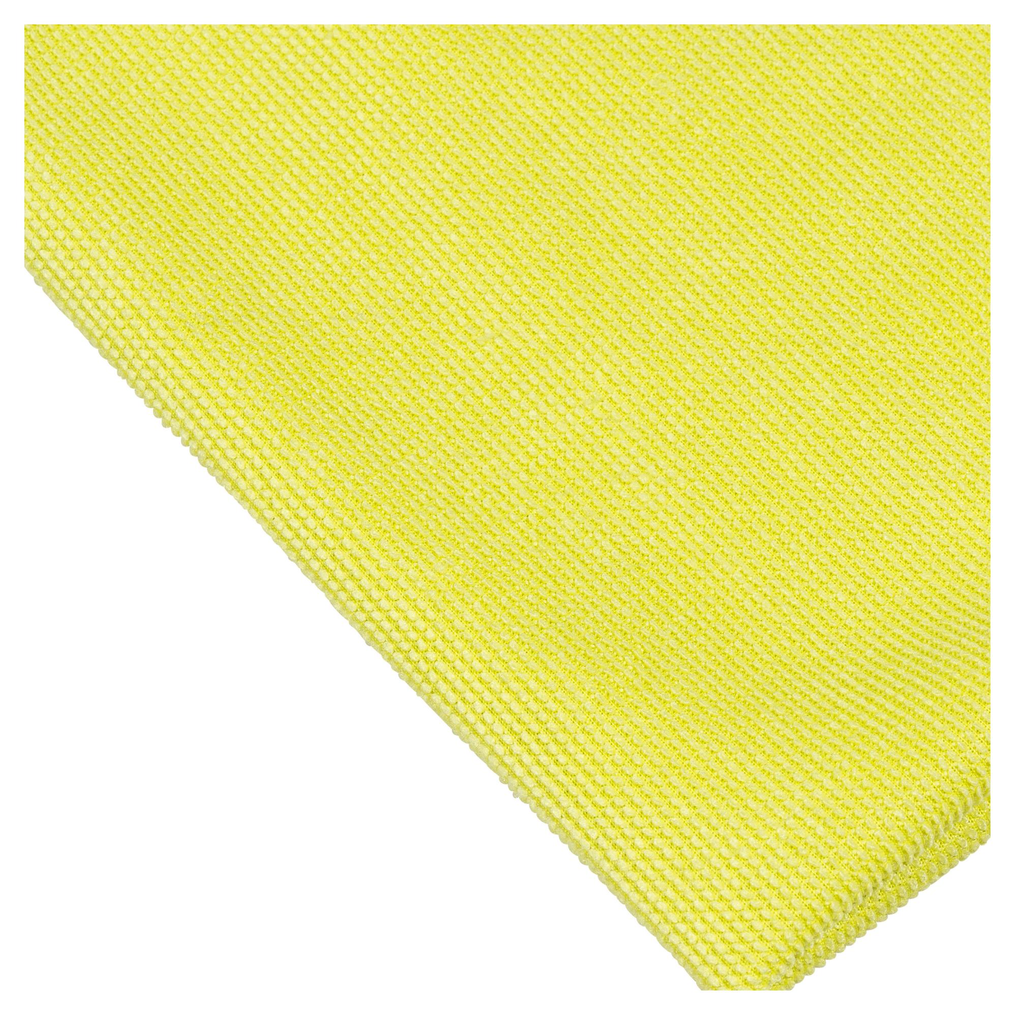 Fibrous cloths used to wipe down surfaces. Can be used with or without a cleaning chemical.The Scotch-Brite High Performance Cloth is specifically designed with a unique combination of bicomponent microfibers and knit construction. This combination provides excellent dust, oil and water pickup with minimal linting. The bicomponent aspect of the microfibers allows for both oil and water absorption while their small diameter provides the maximum surface area for the collection of dust, oil and water. The unique knit pattern of tufts and valleys allows both small and large particulates to be trapped within the Scotch-Brite High Performance Cloth. The combination of microfiber and knit construction provides a versatile non scratching tool allowing the Scotch-Brite Cloth to be used on a wide variety of substrates including delicate surfaces.