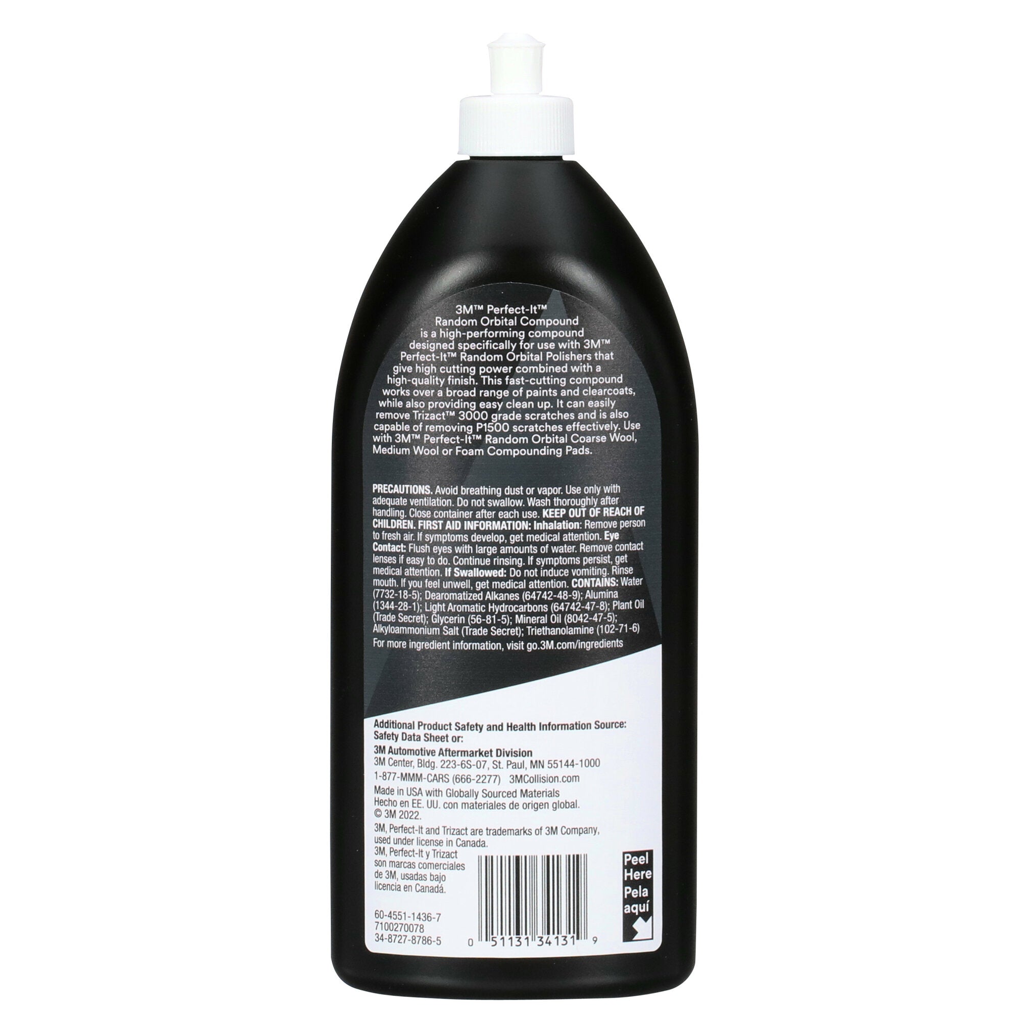 3M Perfect-It Random Orbital Compound is the fast-cutting professional-grade compound formula designed for our 3M Random Orbital Polishing System. Use with our 3M Perfect It Random Orbital Compounding Pads to quickly remove 3000 grade and finer sanding marks. It works on paints and clear coats whether they are fresh or cured.The best way to beat swirl marks is to never have them in the first place. 3M™ Perfect-It™ Random Orbital Compound is a fast-cutting compound that helps you achieve a high-quality finish without the worry of swirl marks or burn through.