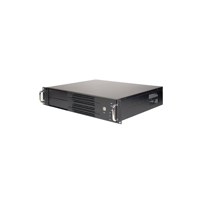 The RM-2U200H3A features 2 x 3.5” internal drive bays with anti-vibration HDD brackets and 1 x 5.25” external drive bay. The front control panel features 2 x USB 2.0 ports, Power On/Off switch, System Reset switch, HDD Access and Power On LED indicators.