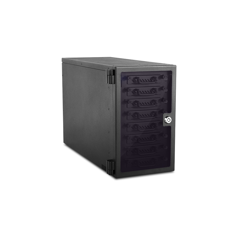 EAGE8402TG-ES external multi-bay JBOD tower is designed especially for storage applications. It is able to hold 8x2.5" HDDs/SSDs for storing mass data via eSATA connectors. Two 60mm cooling fans enhance the ventilation inside. The external JBOD storage case has solid construction and a semi-transparent door with key lock, and is a cost-effective and flexible solution for your critical data storage.