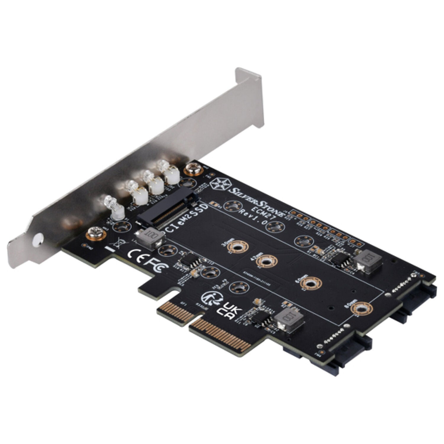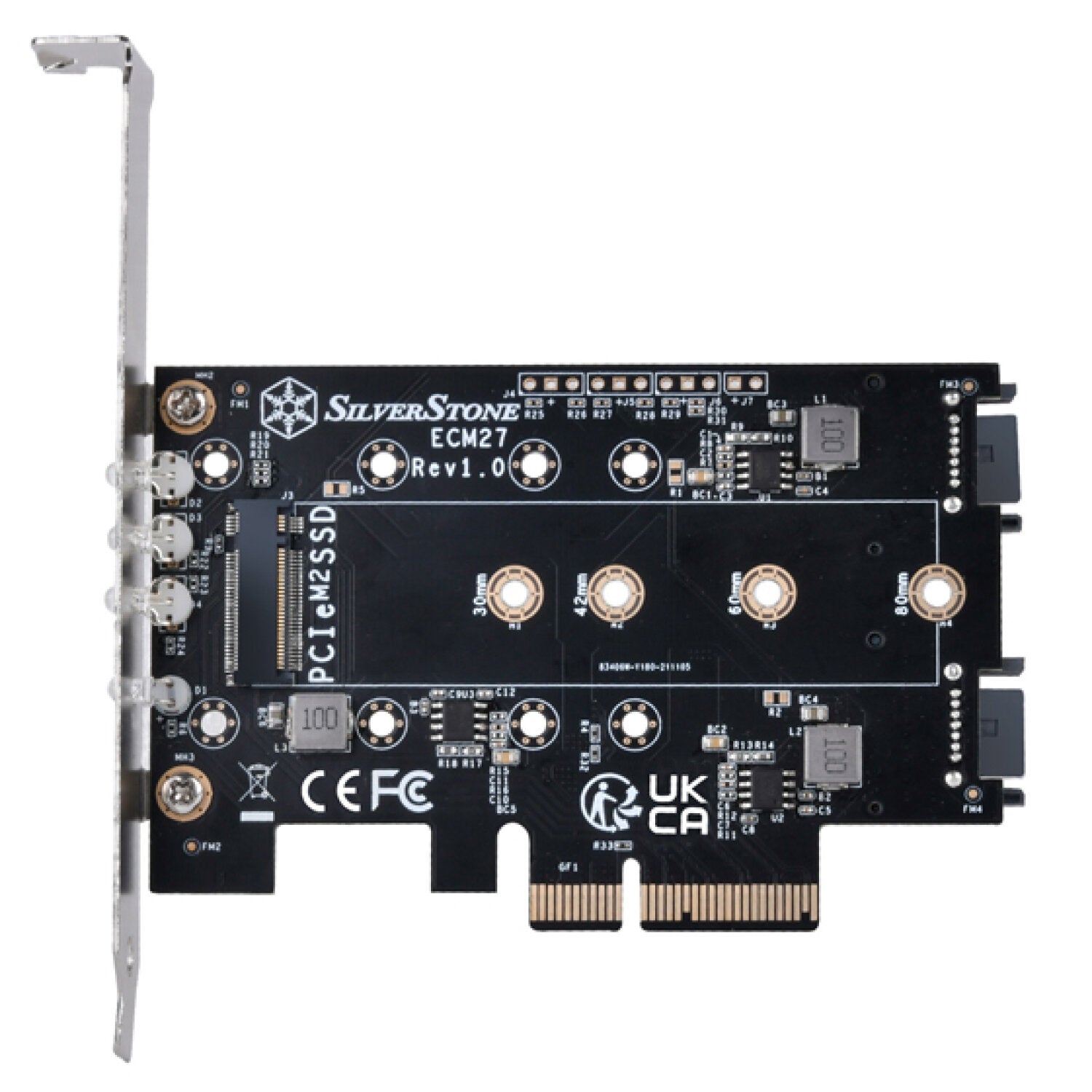 SilverStone ECM27 1-Slot NVMe and 2-Slot SATA M.2 SSD to PCI-E x4 Adapter Card