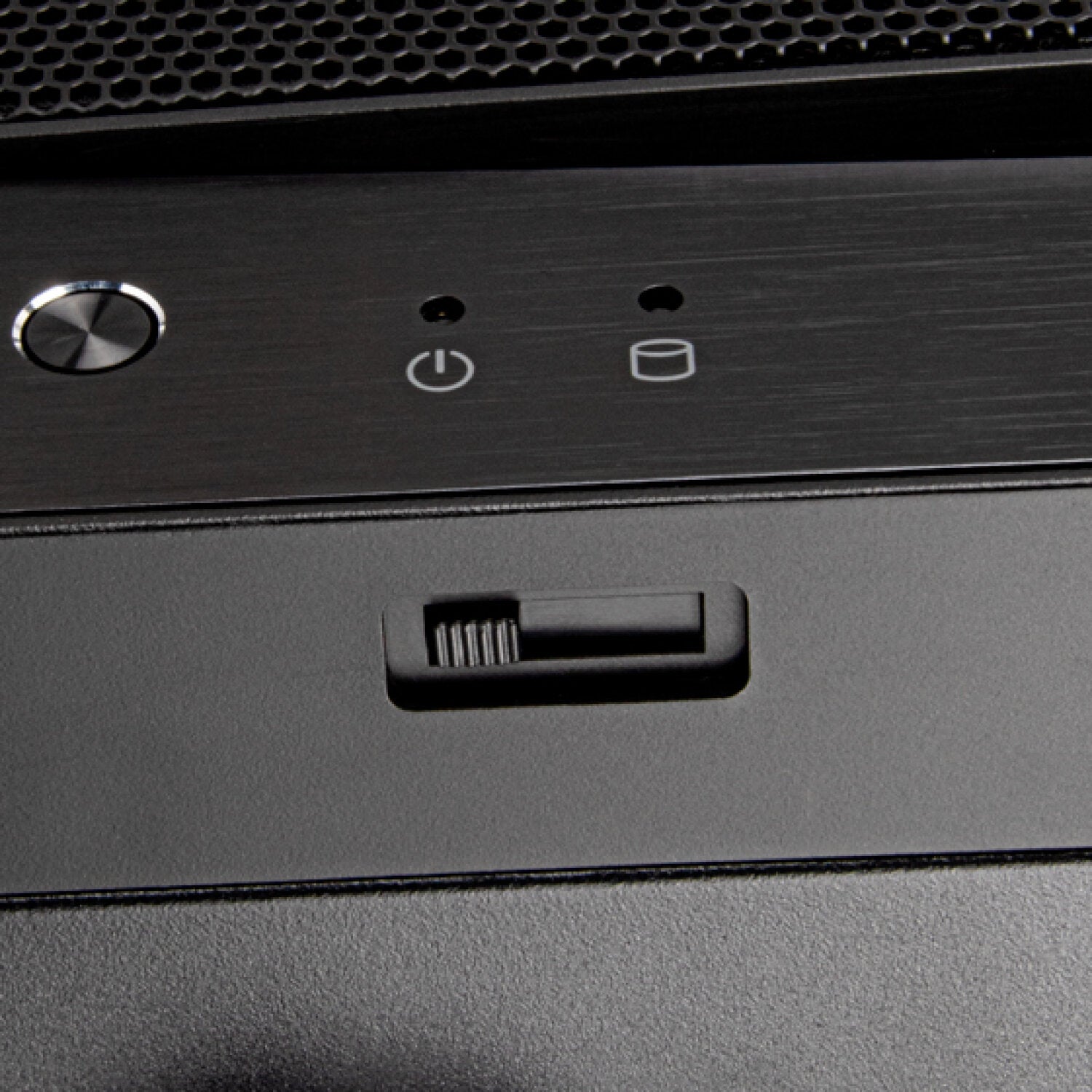 - Fully meshed front panel with shortened chassis provides large surface area for air intake