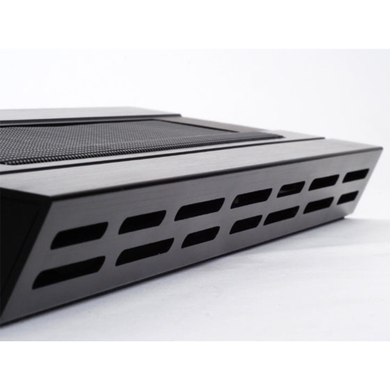 The Noble Breeze NB02 is a multifunctional notebook computer cooler that combines networking, stereo input/output, and USB connectivity into one device. Its design helps to reduce desktop cable clutter, increase expansion capability, and create a cooler environment for a notebook computer. This is accomplished with an all aluminum constructed base positioned at 8 degrees for the best ergonomics and viewing angle. The NB02’s included dual silent fans can be remounted easily so that they can blow either into or away from the base of the notebook computer. There is also a fan switch for turning off the fan during light usage situations. The NB02 can provide power for charging mobile handset or MP3 battery even without a computer connected. For those with lots of mobile devices in addition to a notebook computer, the NB02 is a must-have product.