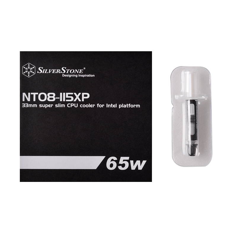 SilverStone Technology’s Nitrogon NT08-115XP is a super slim profile CPU cooler designed for space limited super slim cases such as SilverStone VT01 for Intel Mini-STX platform. It has a true, solid copper center and base with extruded aluminum fins for superior thermal conductivity for up to 65W. The custom super slim 80mm PWM fan can maintain low noise during operation. With a total height of 33mm tall and push-pin design for easy installation, the NT08-115XP is an excellent upgrade for any low-profile system on Intel LGA1150/1151/1155/1156 platforms.
