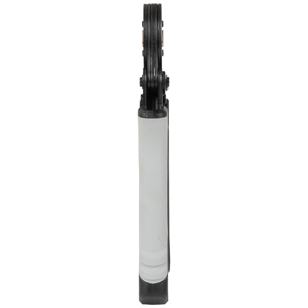 The full-cycle ratcheting ferrule crimper crimps 10-22 AWG ferrule terminals. This tool features four crimping dies that surround terminals 360 degrees for a high quality square shaped crimp. The unique design provides a low effort to crimp while maintaining a high terminal pull-off force. Built in ratchet ensures full-cycle crimping for a complete uniform crimp every time. Dual layer molded grips provide high level of comfort during use.
