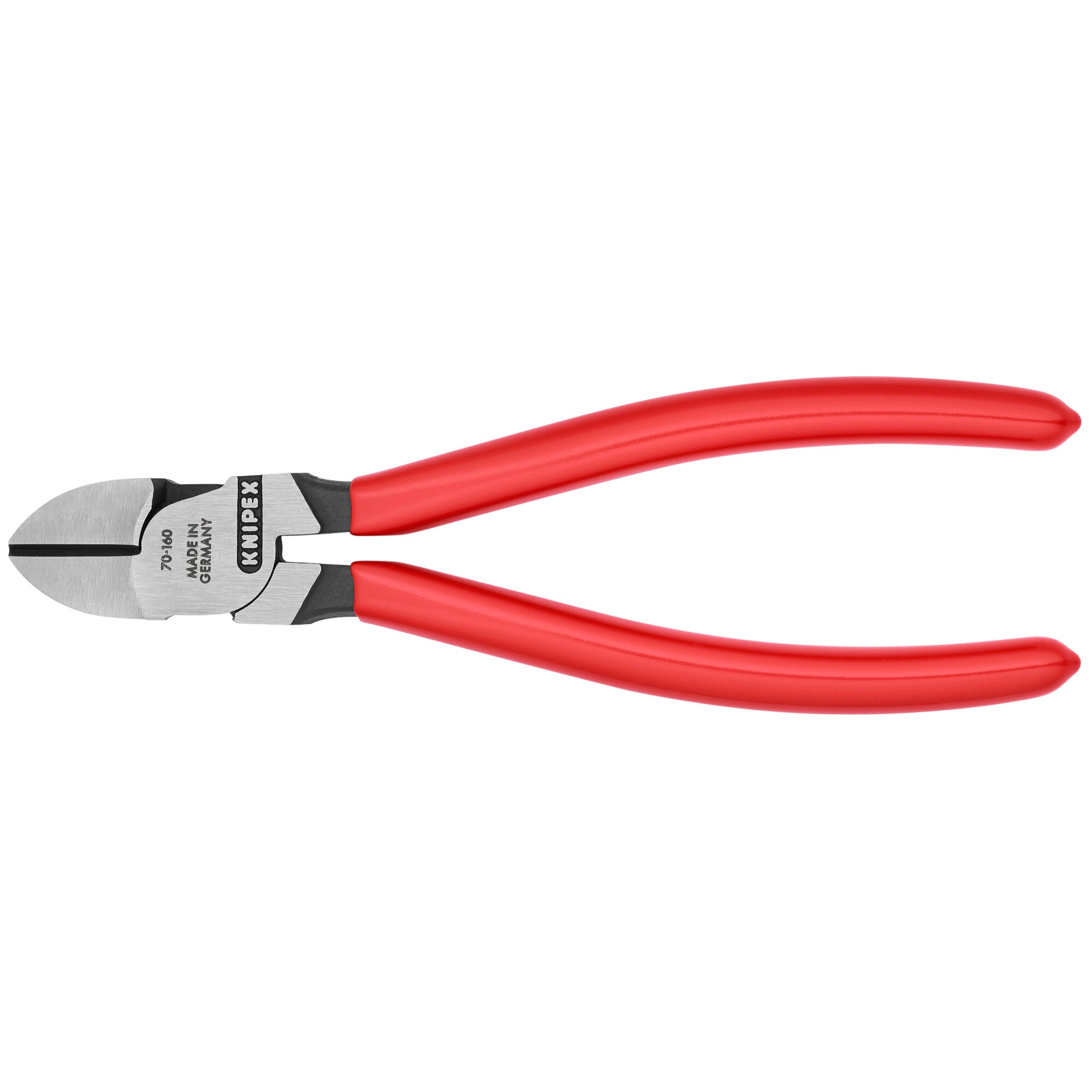 20% higher cutting force than the previous model, plus longer cutting edges. High cutting force due to optimum cutting geometry and transmission ratio. Strong precision rivet for even movement and long service life. Induction hardened cutting edges (approx. 62 HRC) for long life. Narrow head with long cutting edges: good access in confined areas. Long tool life and high loading capacity. The essential diagonal cutters for diverse use. Cutting capacity - up to 5/32" for soft, up to 1/8" for medium and up to 5/64" for hard wire. Vanadium steel; forged, multi stage oil-hardened in multiple steps.