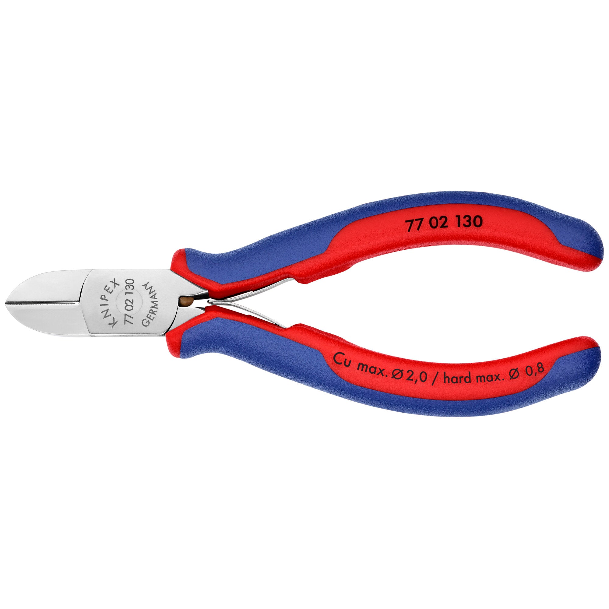For fine cutting work in electronics and fine mechanics. Sturdy, zero-backlash box joint. Low friction double spring for gentle and even opening. The mirror polish together with a fine film of oil offer effective rust protection - no circuit faults caused by peeling chrome from plated tools. Cutting edges induction hardened (approx. 62 HRC). Cutting capacity - up to 5/64" for soft wire, 1/16" for medium and up to 1/32" for hard wire. Semi-flush with small bevel. Ball bearing steel; laser-hardened cutting edges. Cutting edge hardness approx. 62 HRC. Small bevel. Semi-flush cut. Load-optimised for a more direct feel when working. Cutters additionally laser hardened, cutter hardness at least 60 HRC. Narrow sleeves pulled up to the head of the pliers enable the tool to be guided securely and comfortably, also between thumb and index finger. Ball bearing chrome steel.