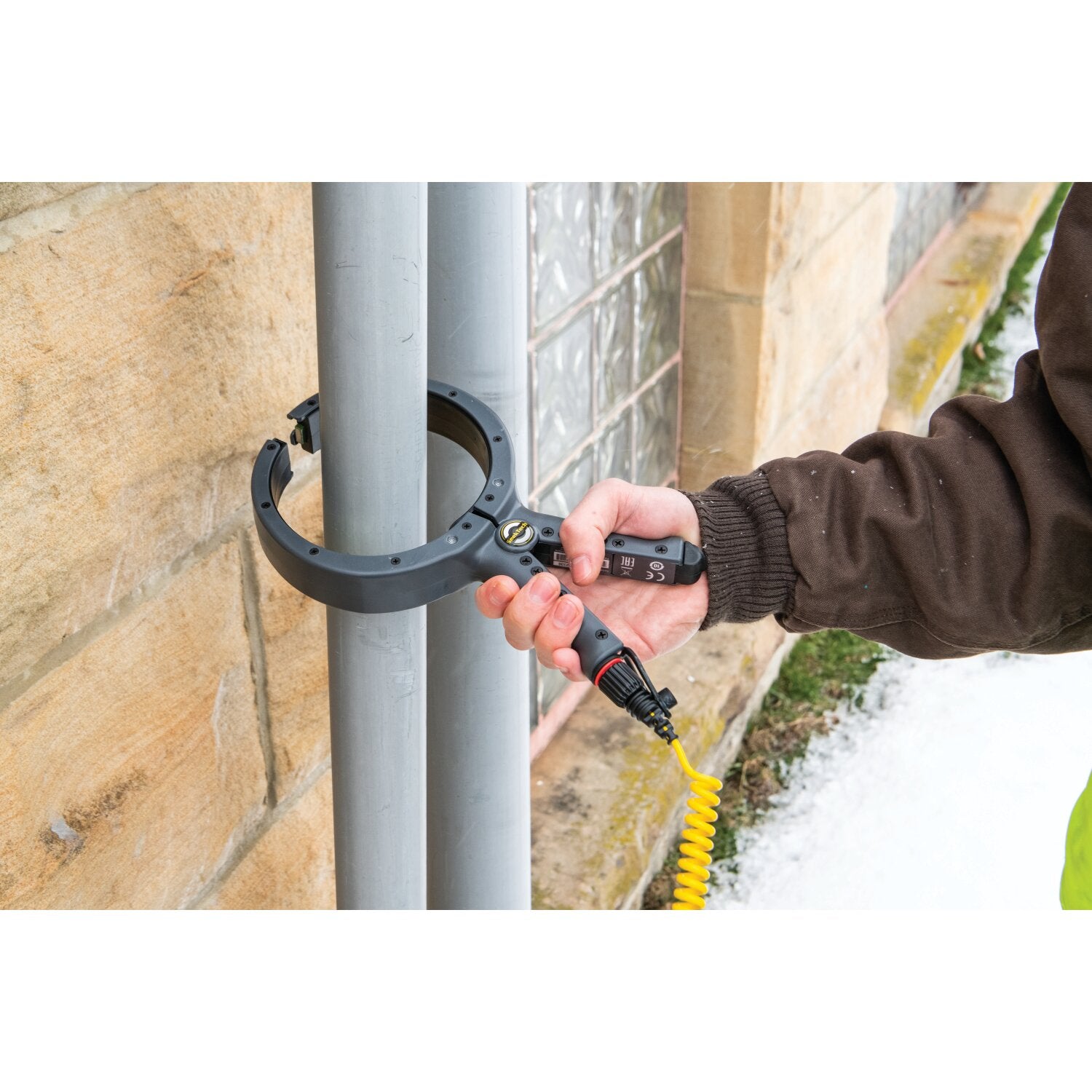 The RIDGID SeekTech Inductive Signal Clamp is an essential tool for utilities and underground locating, enabling users to induce a signal onto cables or pipes with diameters less than 119 mm (4.7 in). This clamp is compatible with all RIDGID SeekTech transmitters, such as the ST-305 and ST-510, and works effectively with comparable transmitters at specified power levels. With a robust design featuring an ergonomic handle, coiled cord for easy storage, and a convenient pull tab for tight spaces, this tool is not only practical but also built to last with a full lifetime warranty.
