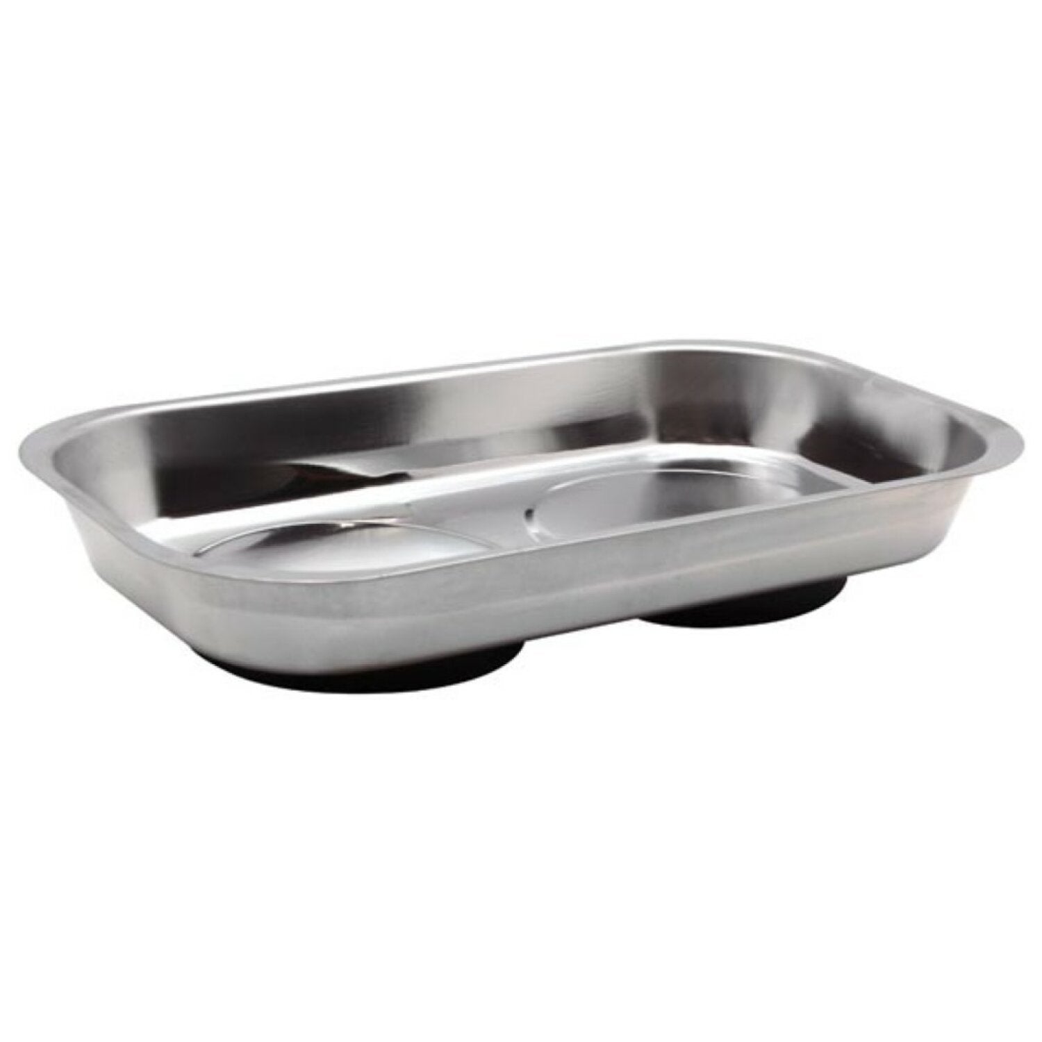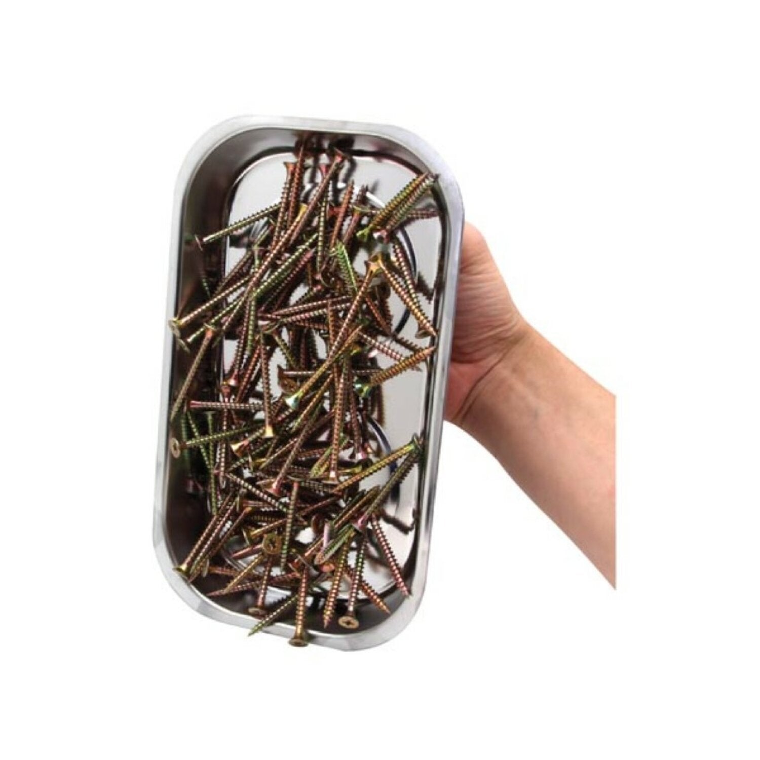 - Rust-free finish: This tray is made of stainless steel with strong magnets that securely hold any iron or steel object.