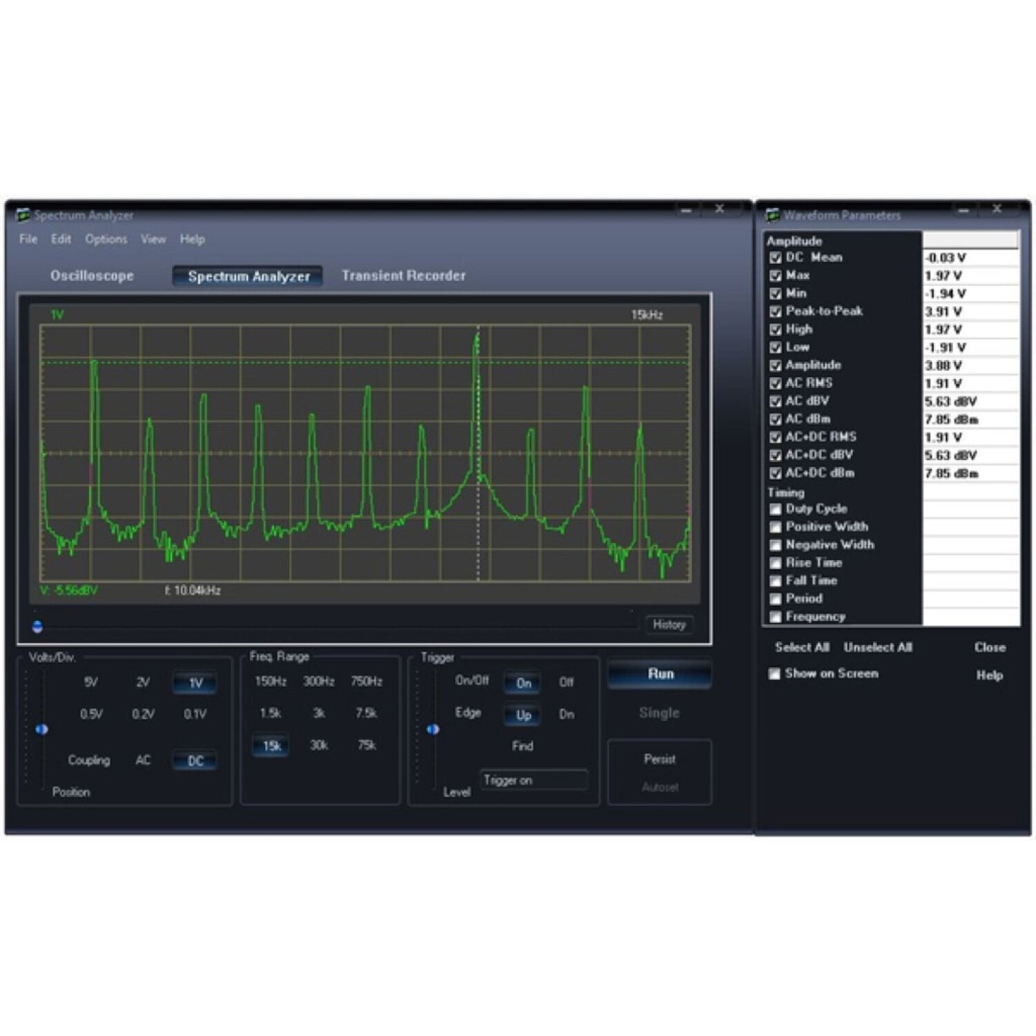 Build your own oscilloscope and use your PC to view measurements. This small kit is easy to install and features the same functions as a full-featured oscilloscope (e.g., the PCSU200 or PCSU1000). The kit comes with a detailed manual and test leads.