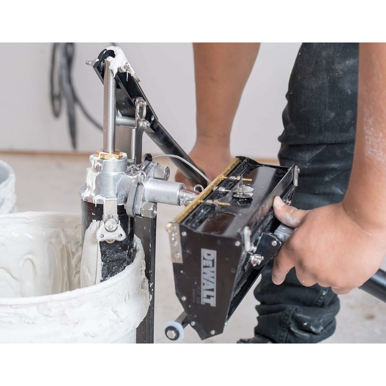 A box filler valve attaches to the compound pump and is used to fill flat boxes, corner applicator boxes and nail spotters. The DEWALT flat box filler valve features a heavy-duty, billet aluminum body that has been hard-coat anodized for long term durability and easy cleanup, as well as a high gauge stainless steel filler nozzle and cable. The box filler valve is longer than other standard models on the market, which enables easier, more comfortable filling and less interference between the tool being filled and the bucket. The DEWALT flat box filler valve has a precision machined mounting flange that allows for quick changes with the gooseneck when required. It has been manufactured to be compatible with joint compound pumps offered by most major brands. A DEWALT Flat Box Filler is included with each DEWALT compound filler pump (DXTT 2-771).