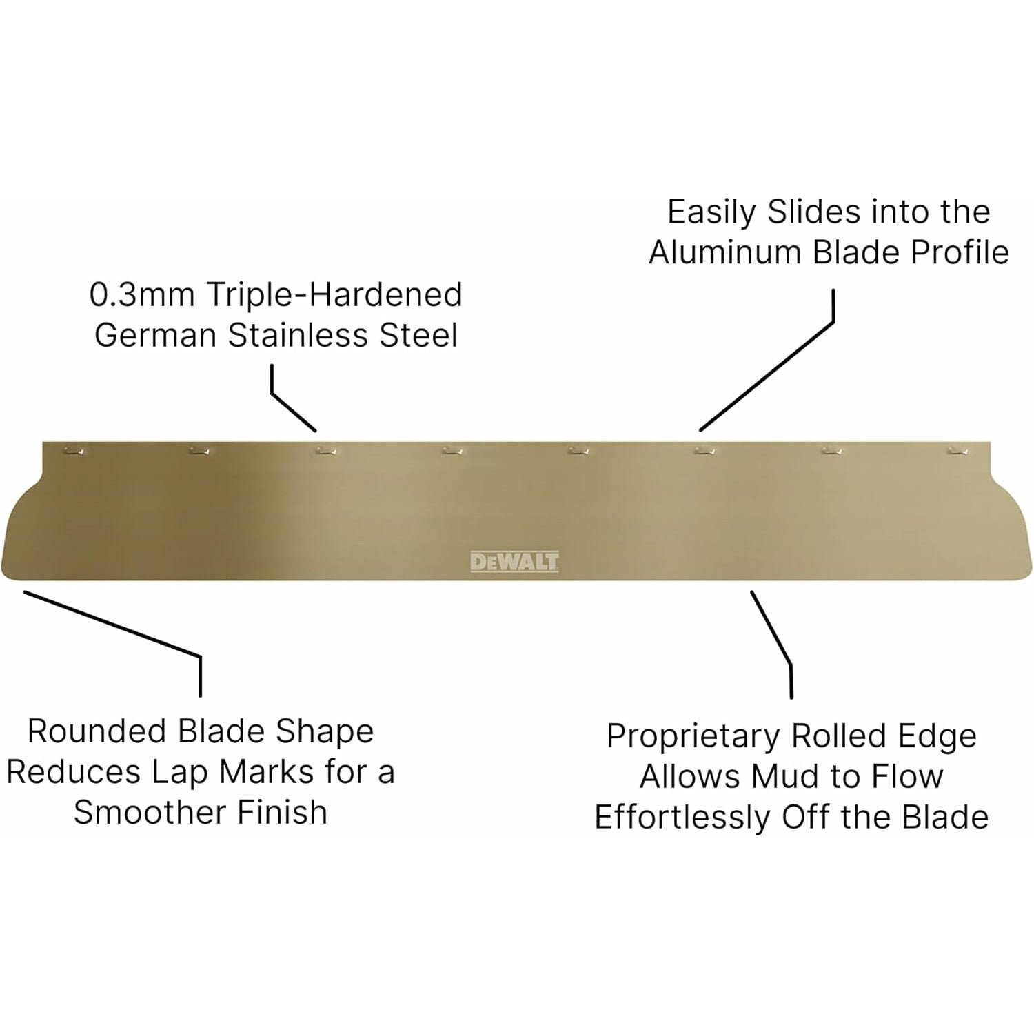 - PROPRIETARY BLADE EDGE - The finishing edge on DEWALT skimming blade inserts features a proprietary rolled profile - not a sharp squared off edge like other blades that are stamped out.
