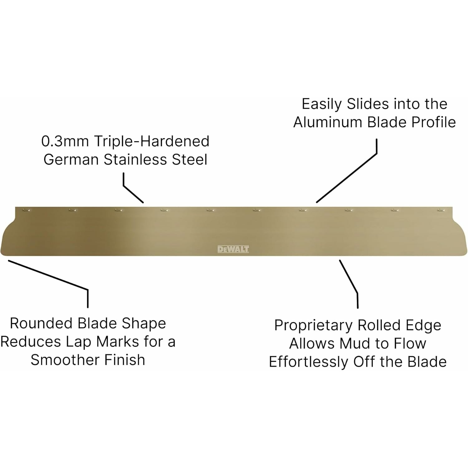 - PROPRIETARY BLADE EDGE - The finishing edge on DEWALT skimming blade inserts features a proprietary rolled profile - not a sharp squared off edge like other blades that are stamped out.