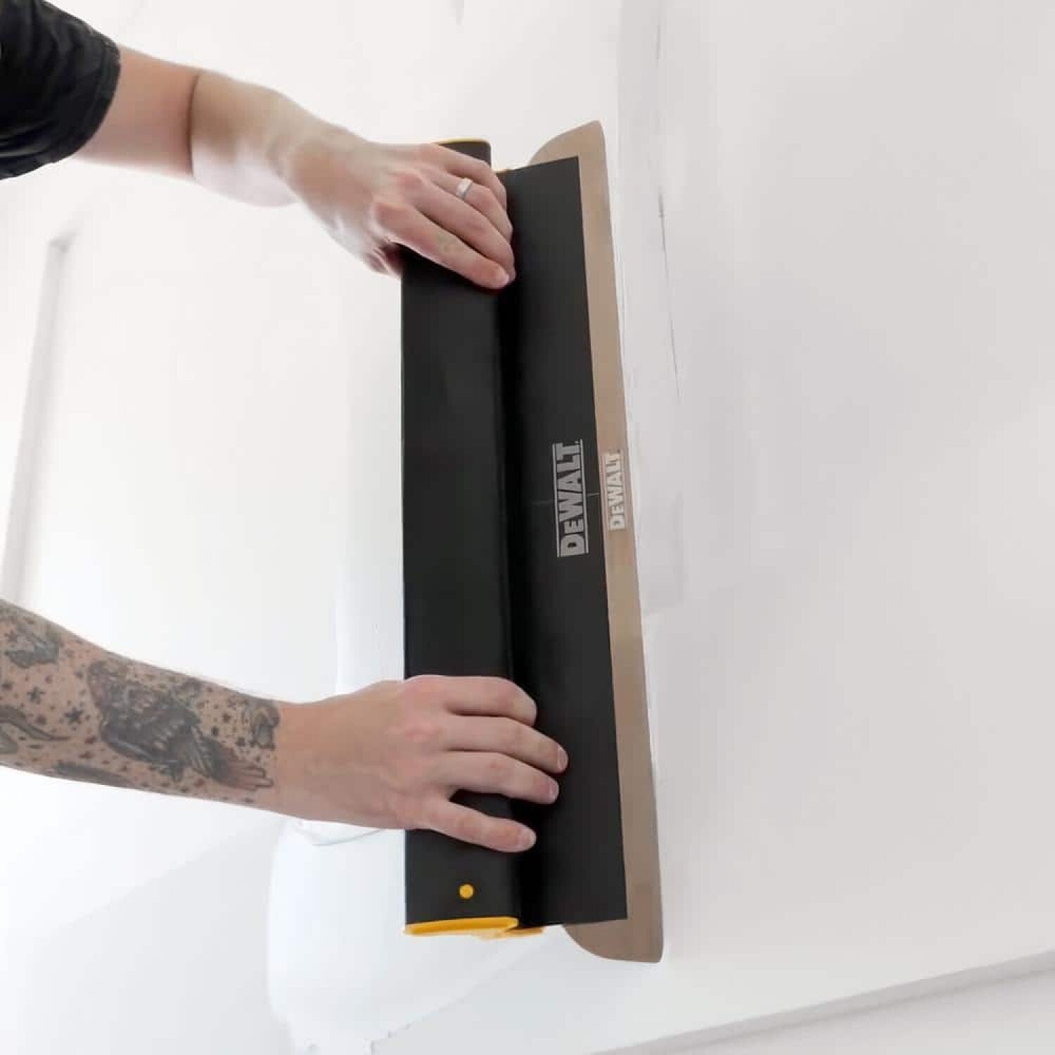 - A PROPRIETARY BLADE EDGE - The 0.3mm European stainless steel blade inserts feature a rounded edge profile (vs. a typical stamped edge that is squared off and sharp). The compound rolls off the DEWALT Skimming Blade evenly and with a smoother finish