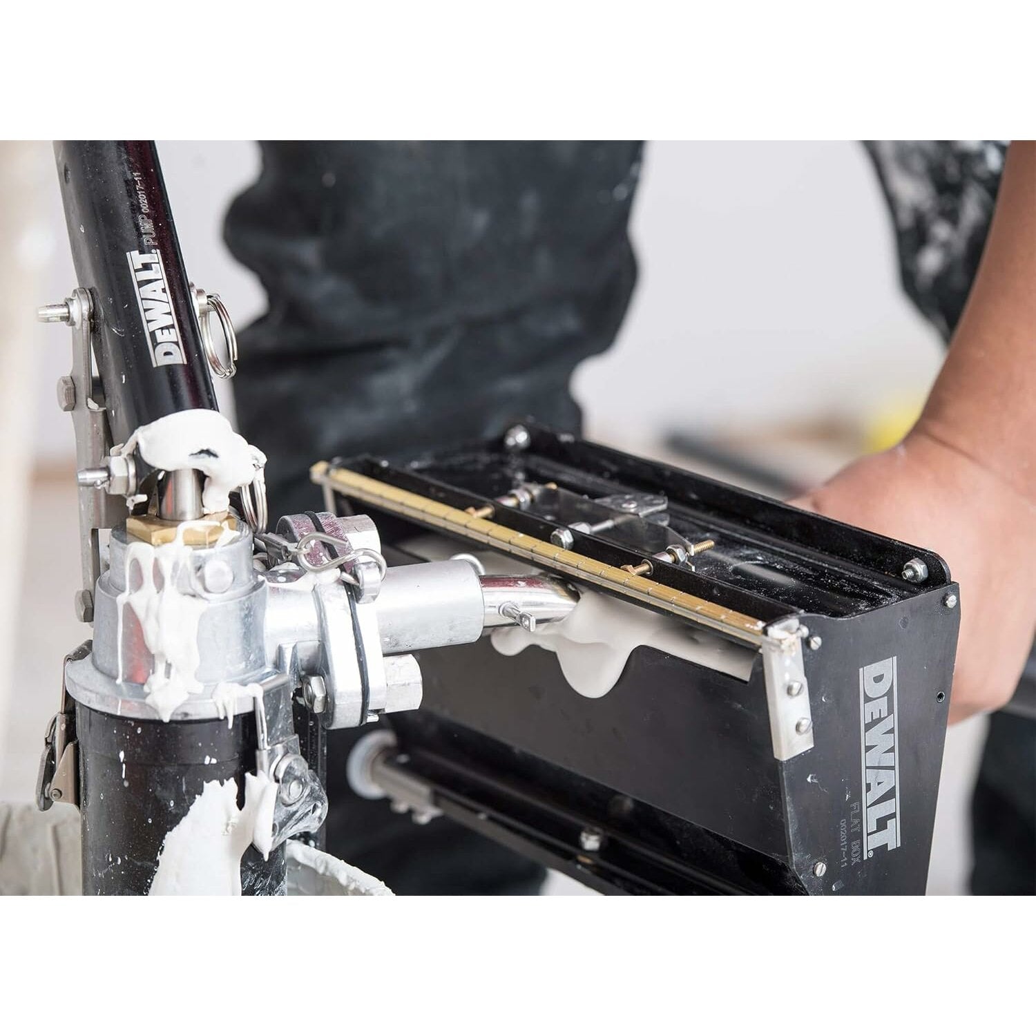 This premium quality standard flat box set includes tools to complete finishing jobs with improved efficiency. The 10 in. and 12 in. drywall flat boxes are used in conjunction with a flat box handle to efficiently apply a crowned, feathered coat of joint compound over taped joints on walls and ceilings. The flat box handle is extendable for flexibility and comfort. The joint compound pump is used to fill automatic drywall finishing tools, such as flat boxes, via the box filler valve or an optional gooseneck attachment (DXTT-2-714). Major components are hard-coat anodized for extreme durability and easy clean up. This set is backed by a 10-year limited warranty.