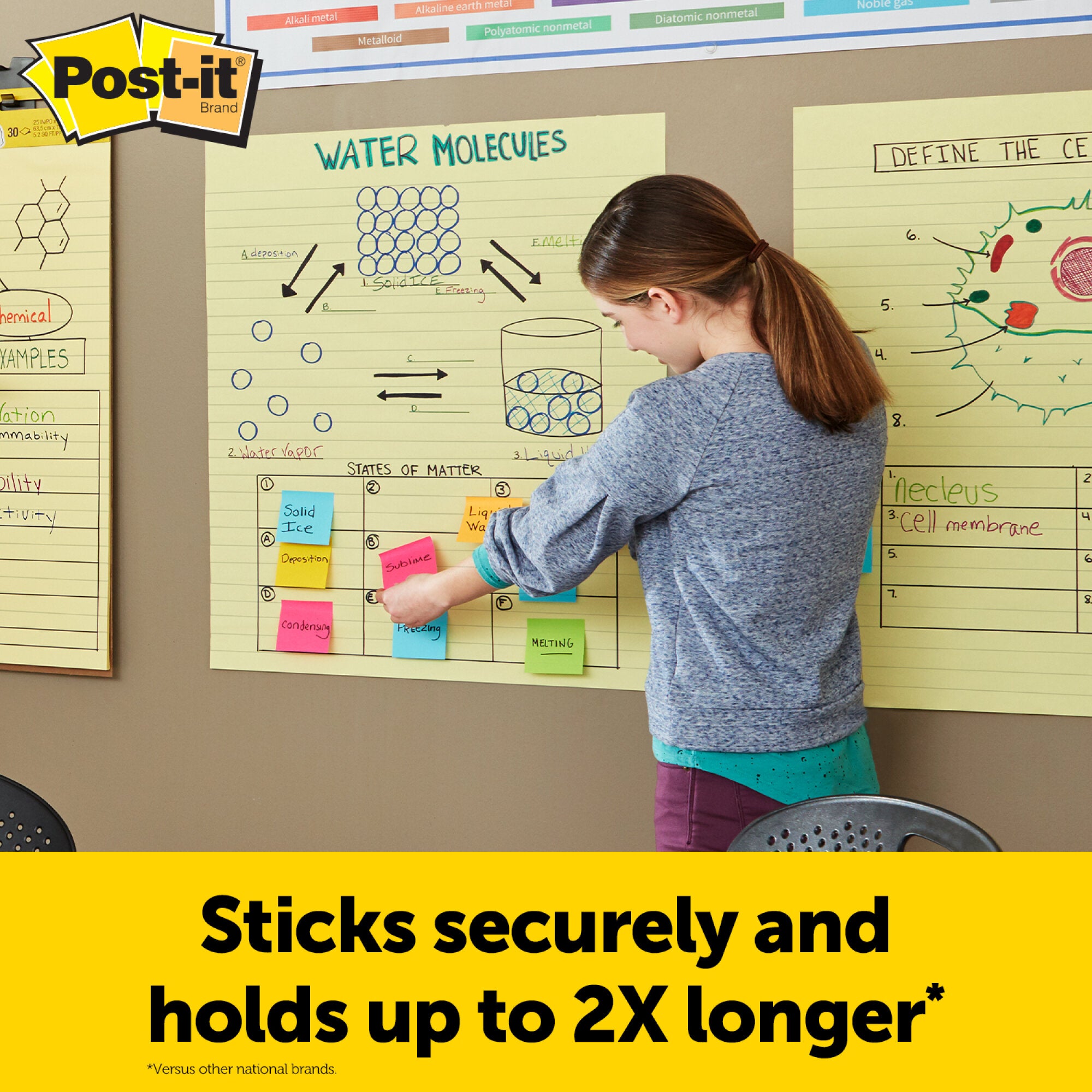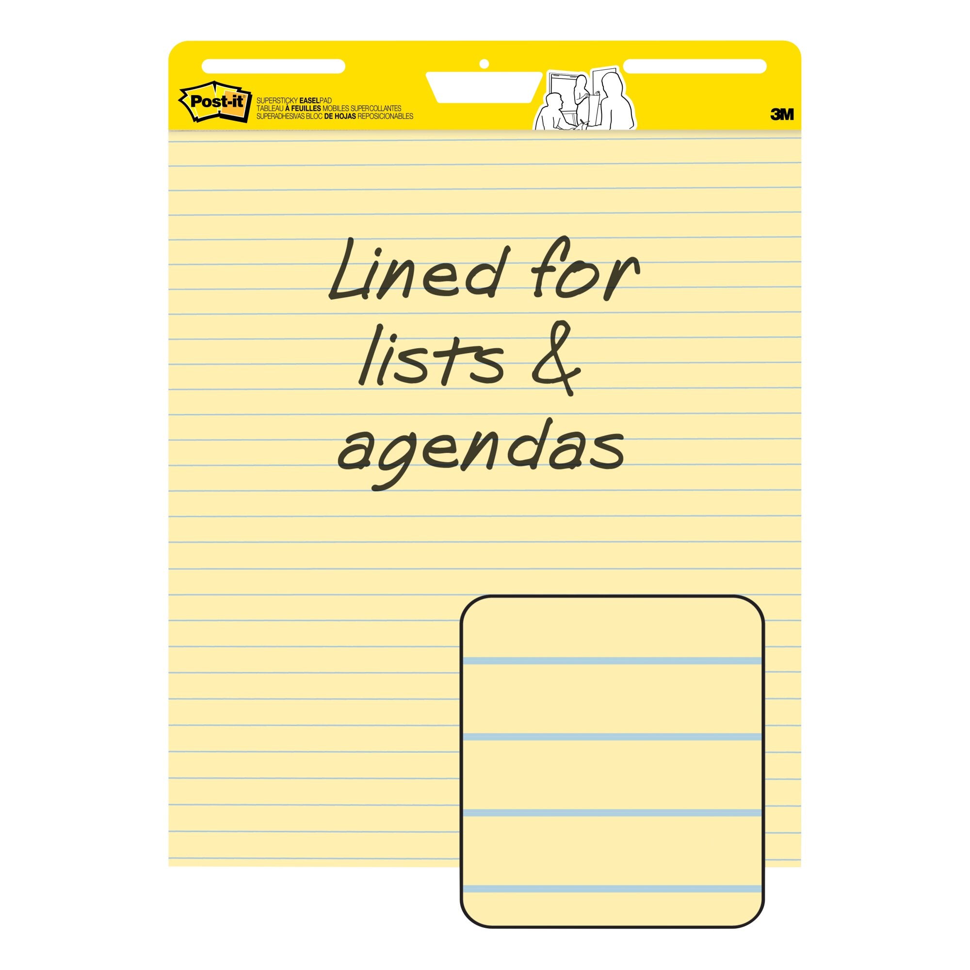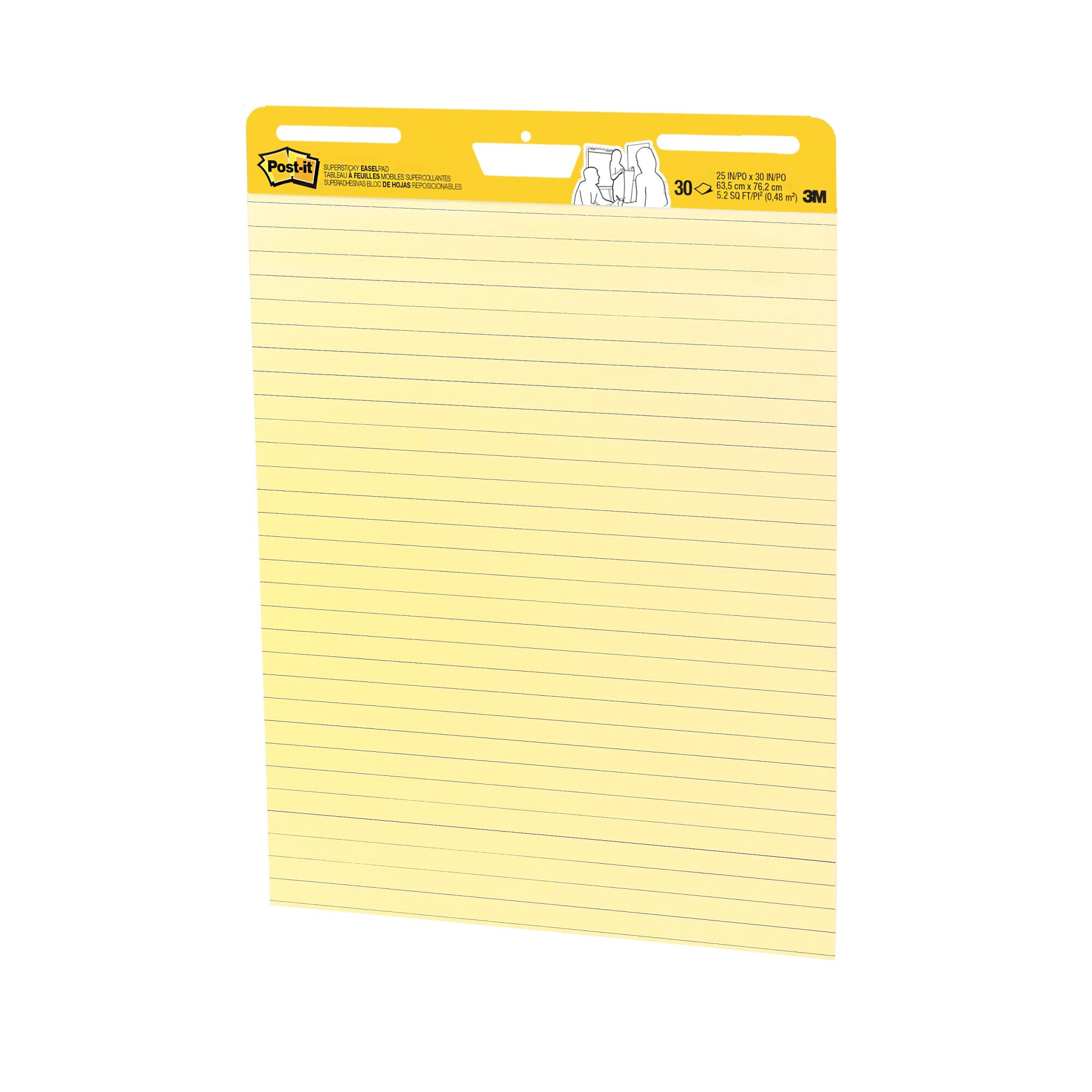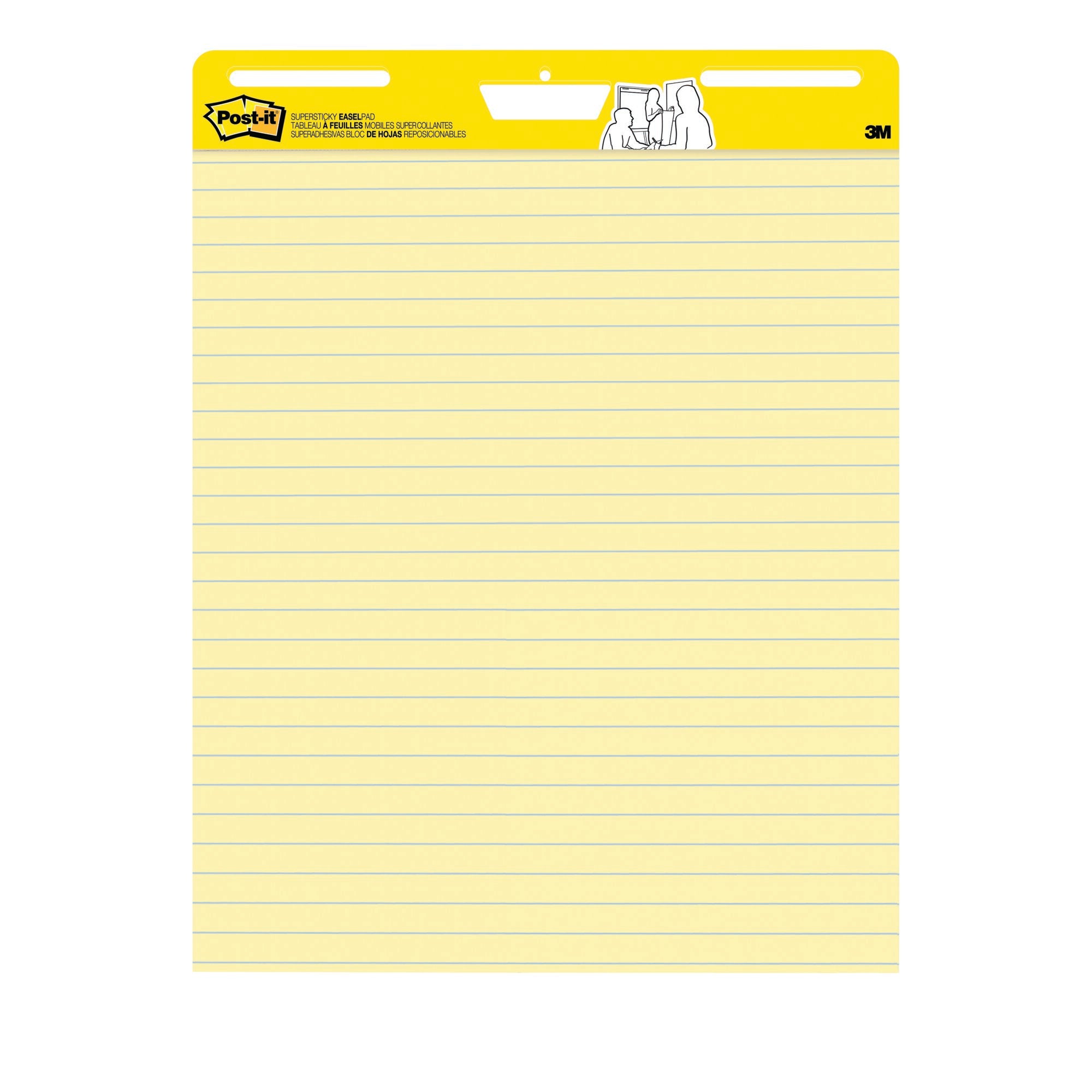 Now everyone can have a self-stick easel pad. The 25 in. x 30 in. size is great for those small meetings. High quality paper resists marker bleed through. Two pack - Yellow Lined.It’s an amazing feeling when your team just clicks—everyone feels a shared drive toward success. But, how do you ignite that feeling on every team? Capture the spark at your next meeting with Post-it® Super Sticky Easel Pads. Adhesive backed sheets stick and re-stick to hold up to 2X longer* to most wall surfaces, unlike flip chart paper. The paper resists marker bleed through so you can capture input by writing directly on the sheet. Use with Post-it® Super Sticky Notes to organize ideas. Download the free Post-it® App to instantly capture and save your work so you can share notes with the team without recaps or delays.