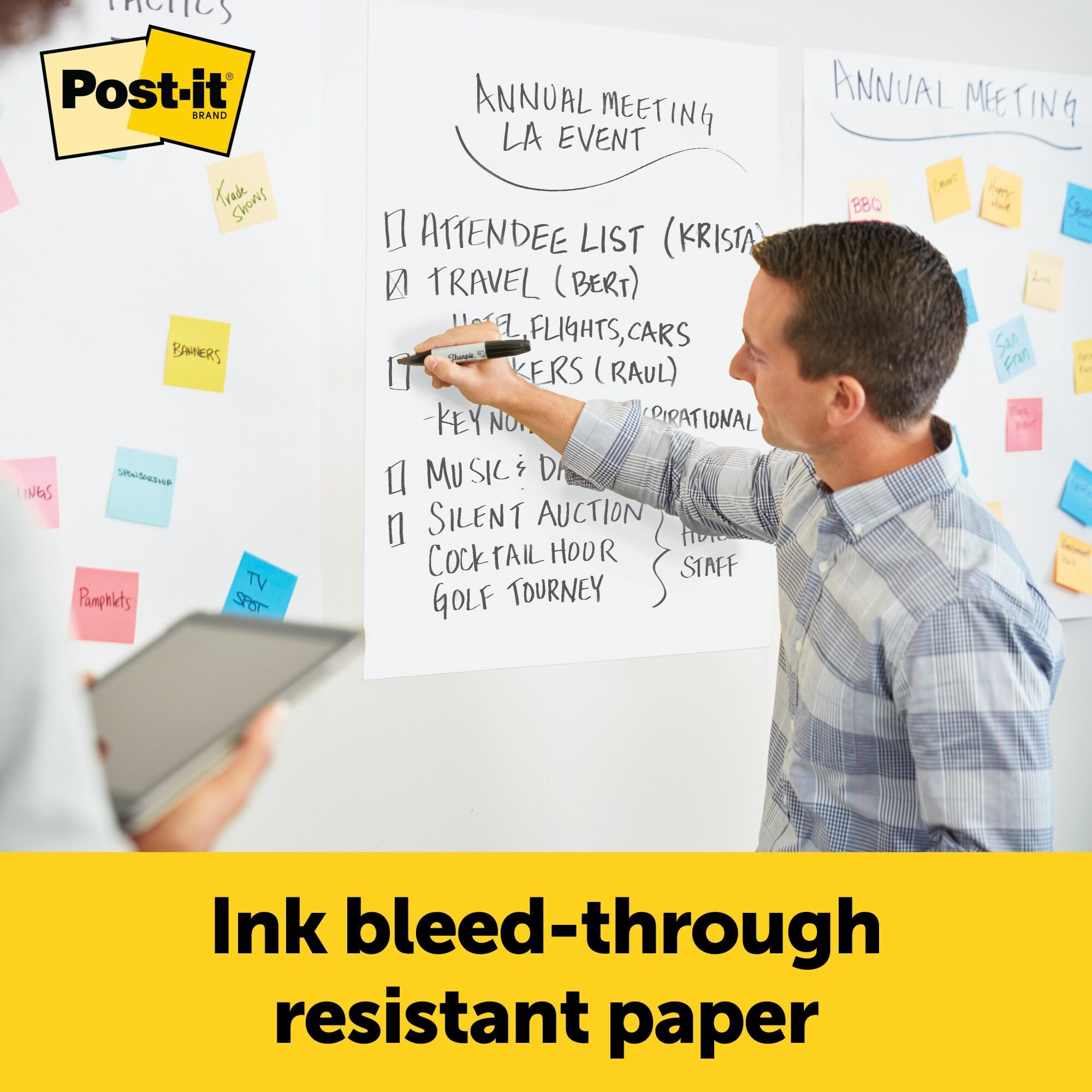 • INK BLEED-THROUGH RESISTANT PAPER - Premium self-stick flip chart paper that resists marker bleed-through to keep great ideas on the page, not on what's under the page