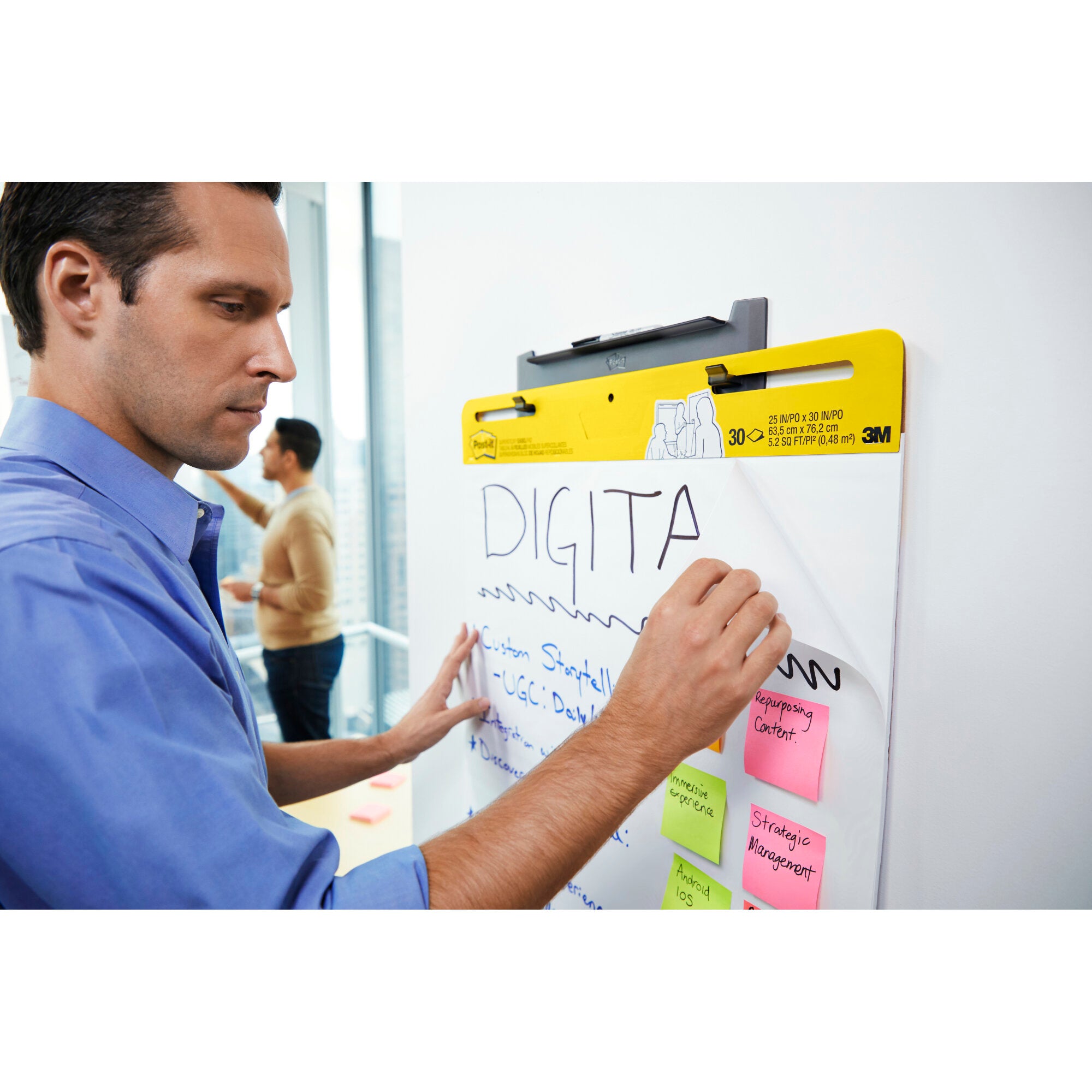 Sleek and light weight, the Post-it Super Sticky Wall Easel mounts to most walls and doors with Command adhesive strips, providing a convenient place to hang easel pads. Turn walls into meeting spaces. 2 Wall Easels and 8 Command strips.It’s an amazing feeling when your team just clicks—everyone feels a shared drive toward success. But, how do you ignite that feeling on every team? Capture the spark at your next meeting with Post-it® Super Sticky Easel Pads. Adhesive backed sheets stick and re stick to most wall surfaces, unlike flip chart paper. The paper resists marker bleed through so you can capture input by writing directly on the sheet. Use with Post-it® Super Sticky Notes to organize ideas. Whenever you want to brainstorm, present, or track projects, they're ready to help you succeed.