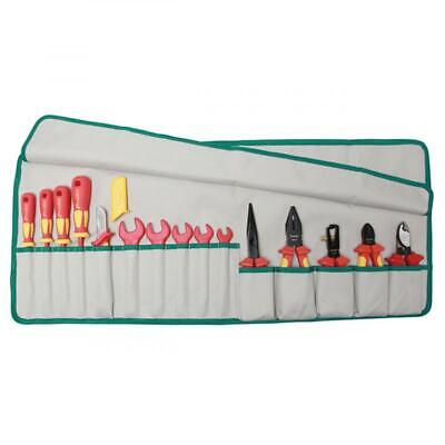 The tool roll contains 15pcs 1000V insulated single open end wrenches, screwdrivers, knife, pliers and cutters in a durable 600D tool roll bag, Complete set for power plant, HVAC, automotive, military, aircraft field applications and more.