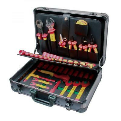 1,000V 41-Piece Metric Toolkit is ideal for power plant, HVAC, automotive, military, aircraft, field applications and more. Equipped with a huge assortment of insulated single open-end wrenches, single boxend wrenches, adjustable wrenches, screwdrivers, a knife, pliers and cutters, T handle and 1/2" sockets in a durable, aluminum frame tool case.