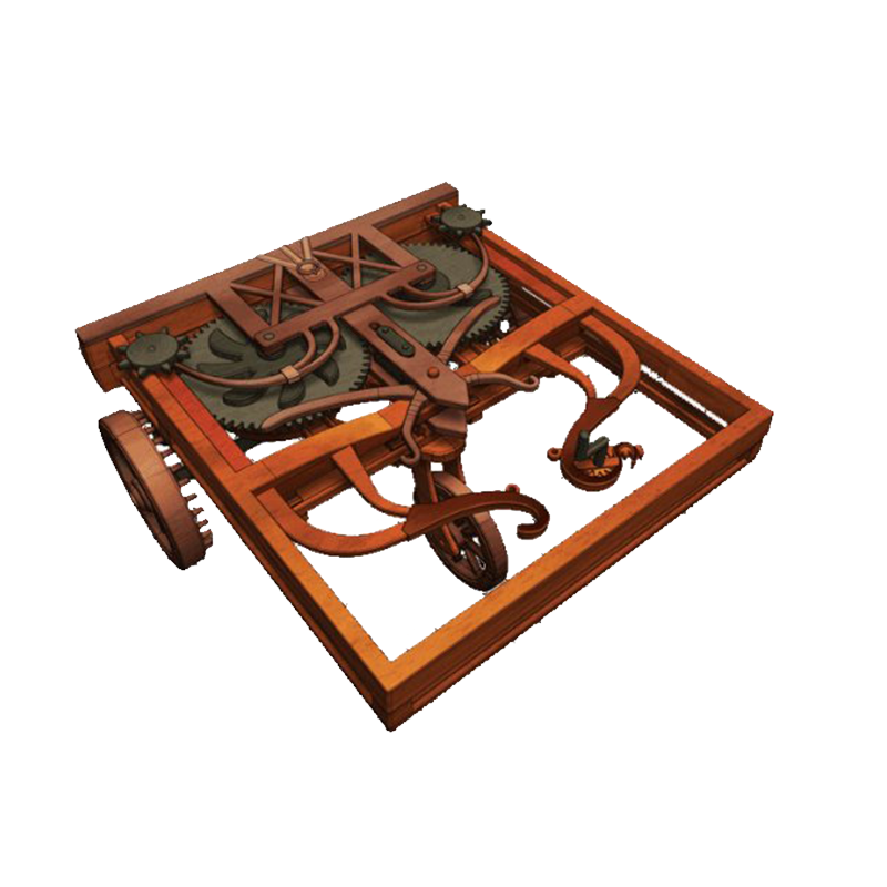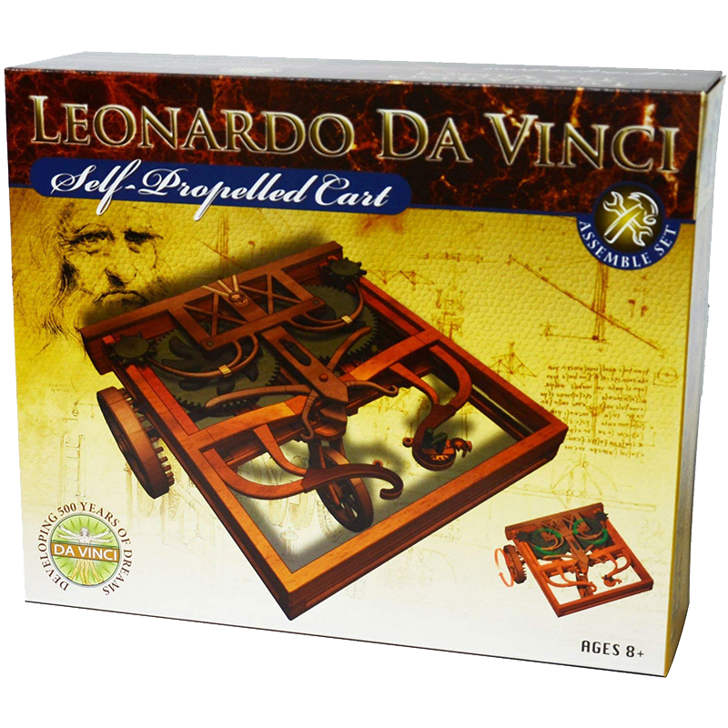 Leonardo Da Vinci designed the first self-propelled cart capable of moving without being pushed or pulled manually. This precursor to the automobile was one of the many inventions that Da Vinci created dealing with locomotion and transportation.