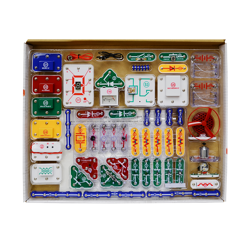 Award-winning Snap Circuits® makes learning electronics easy and fun! Follow the colorful pictures in our manual to build exciting projects such as AM radios, burglar alarms, doorbells, and much more! Snap Circuits® features building components with snaps to assemble electronic circuits that function like the printed circuit board found in most electronic products. All parts are mounted on plastic modules and snap together with ease. Hours of educational fun -- great gift for budding engineers!