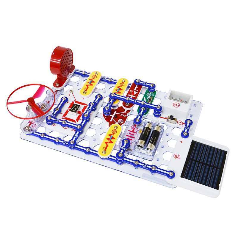 Learn the basics of electronics with Elenco’s largest Snap Circuits kit, the SC-750 – no tools or soldering required! This kit includes enough pieces to make more than 750 electronic projects which include: burglar alarms, AM/FM radio, “space wars”, race games and more!