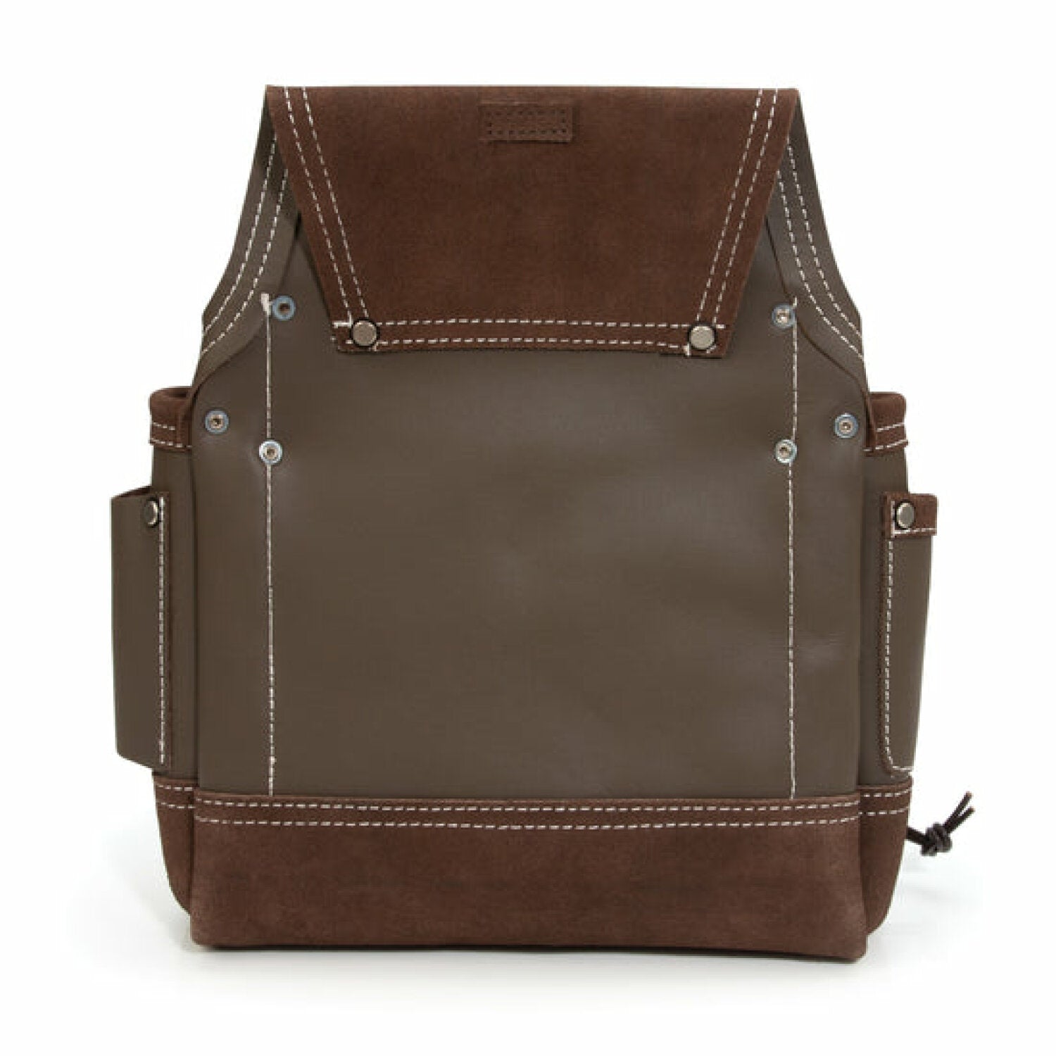 This Estwing electrician's tool pouch has a single large main pocket that is lined with several smaller slip pockets to let you carry the tools and supplies you need to get your work done. Made from 100% top grain cowhide leather, this handy pouch supplies you with a total of 8 various sized pockets to store utility knives, wire cutters, screw and bit drivers, and other small tools and includes 3 wet molded pliers pockets that can adapt to snugly fit stored tools. Additional storage includes several exterior tool loops, an adjustable flashlight holder, steel tape measure clip, and a steel electrical tape chain. Rivet-reinforced stress points and pocket corners add extra support to the heavy-duty double-stitches binding edges to provide lifelong reliability. The integrated tunnel-style belt loop is wide enough to fit onto belts of up to 3-inches in width.