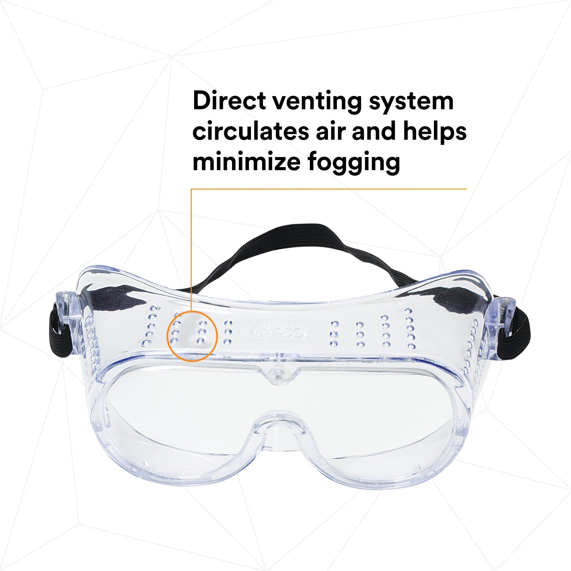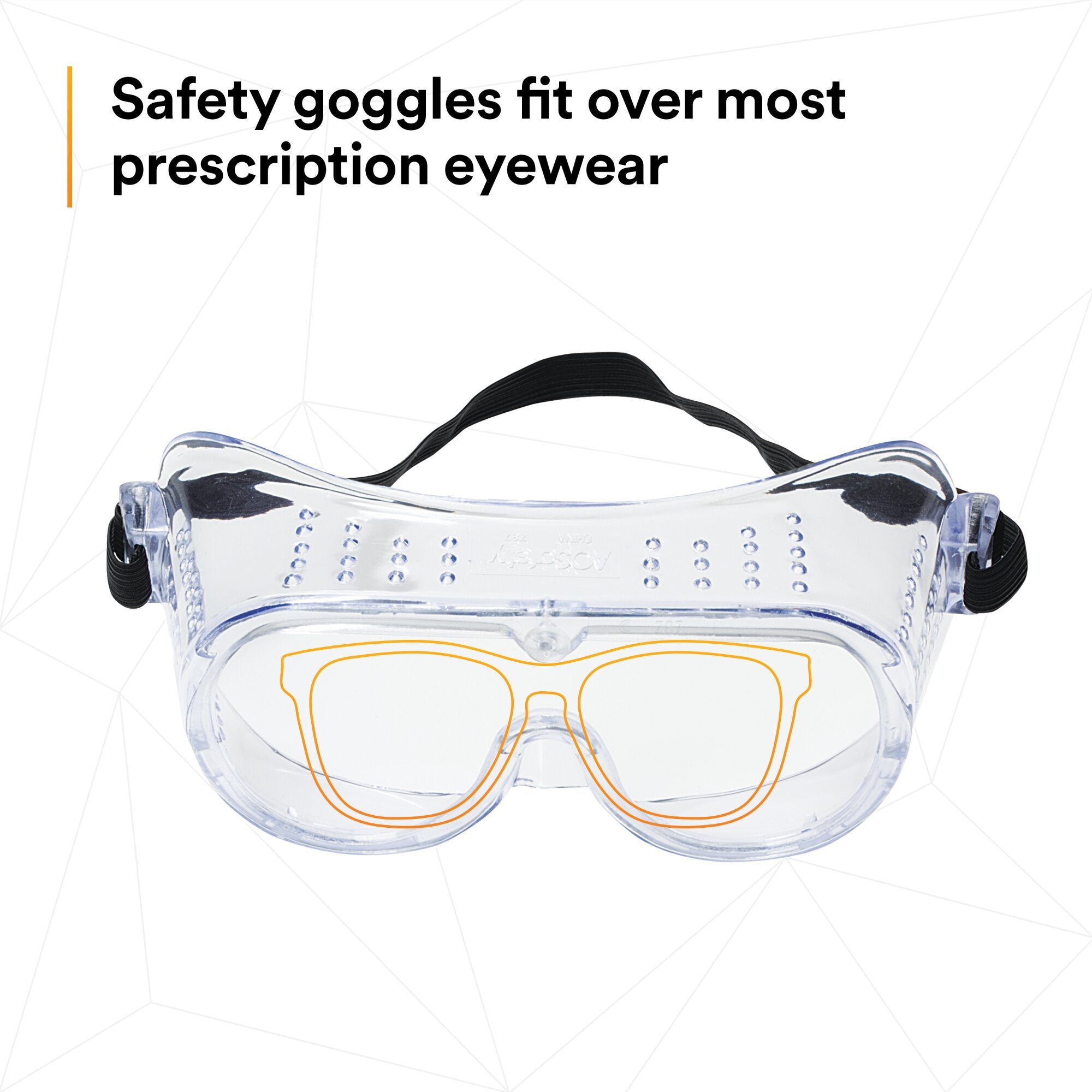 One of the most economical goggle options available, 332AF protective eyewear offers direct anti-fog venting, an djustable elastic strap, and polycarbonate construction with over-the-glass coverage. Indoor or outdoor use safety impact goggles.The 332AF safety impact goggles are a dependable and economical choice that offer a sturdy polycarbonate lens, adjustable elastic strap and a wide opening to fit over prescription eyewear. It is built with a direct venting system that circulates air and helps minimize fogging, allowing for use in varied environments and conditions.
