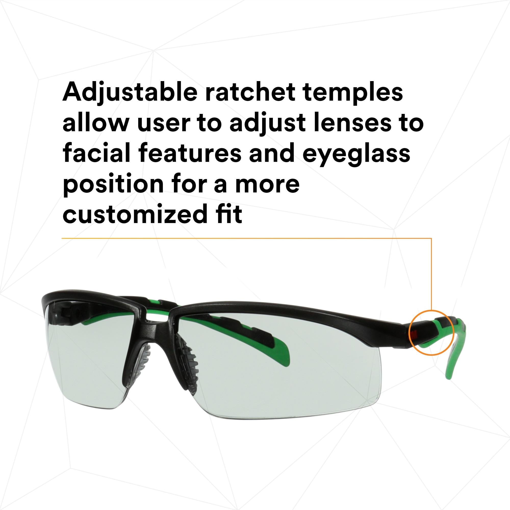 3M Solus 2000 Series, S2017AS-BLK, Black/Green Temples